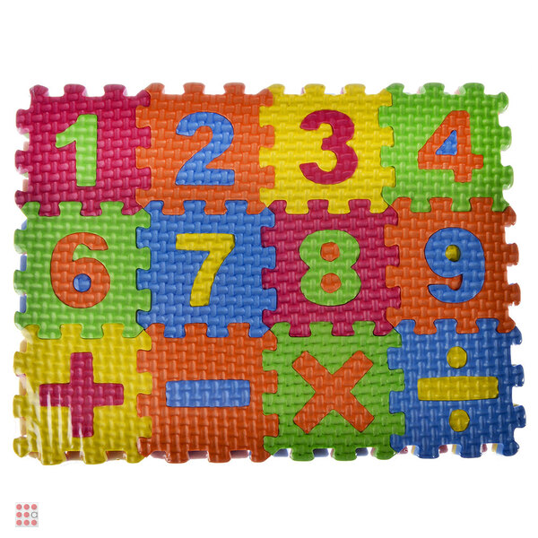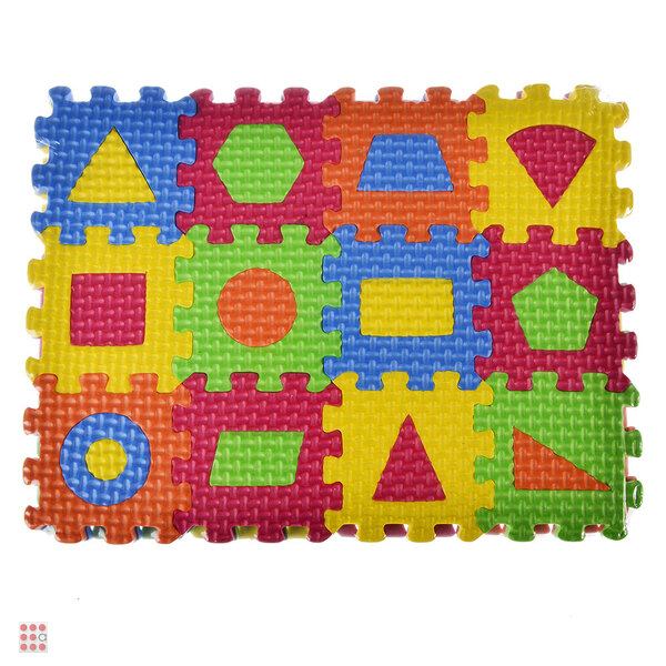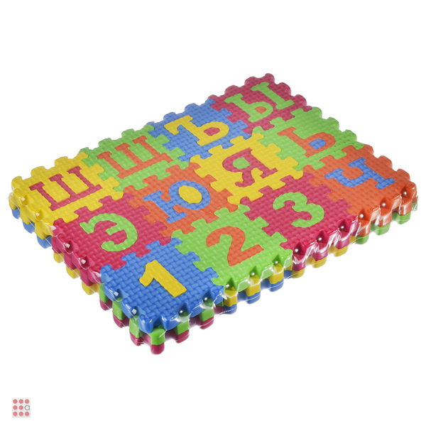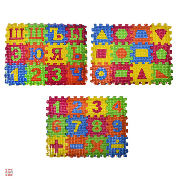 Коврик пазл сделан из гигиеничного и прочного ЭВА материала. 3 дизайна на выбор — цифры, геометрические фигуры и буквы.