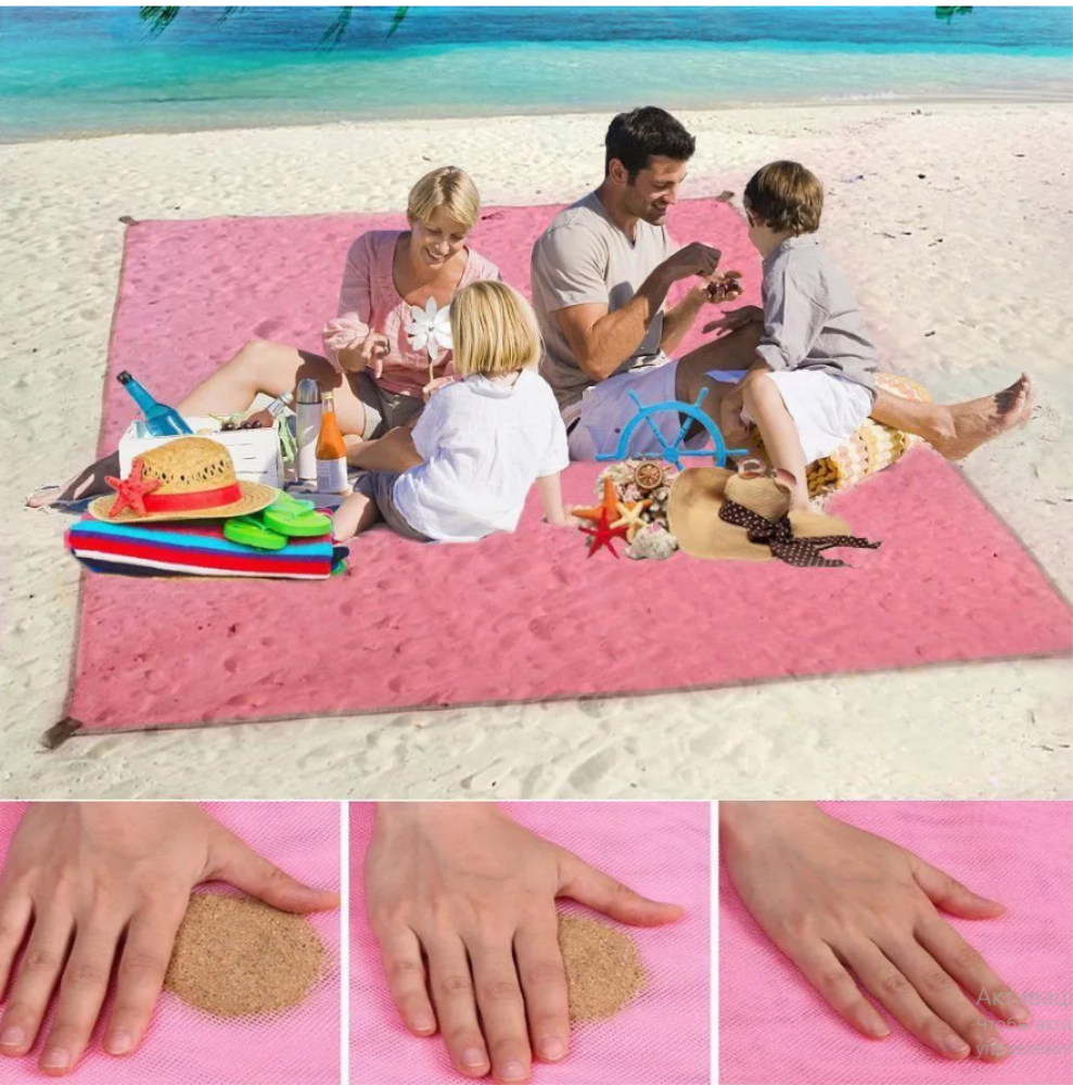 Данный коврик выполнен по специальной инновационной технологии, уникальность состоит в том, что оно способно самостоятельно вытолкнуть сквозь сетчатые волокна грязь, пыль и частички земли. Так же при необходимости Вы сможете им укрыться, оберегая себя от солнечных лучей, так как подстилка не пропускает до 90% ультрафиолета
