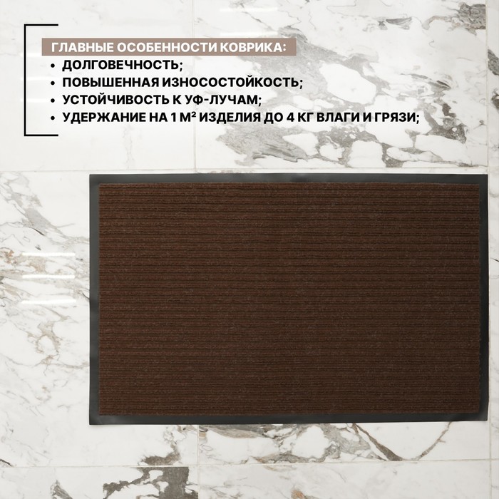 Страна: Россия В боксе: 10 шт Состав: Винил, ПВХ Материалы: винил, ПВХ Фасовка: по 1 шт Индивидуальная упаковка: Без упаковки Габариты товара: 80 см × 50 см Сертификат: ЕАС Набор: Нет Цвет: Коричневый Плотность, г/м²: 430, 1700 Размер, см: 50 х 80 Длина, см: 80 Ширина, см: 50 Толщина, мм: 6,6 Высота ворса, мм: 7 Тематика: Однотонная Рисунок: Нет Оттенок: Коричневый Материал: Винил Вид установки: Напольный Вид покрытия коврика: Ворсовый Коврик влаговпитывающий — лучшее решение для защиты помещения от грязи, мелких частиц песка и земли, приносимых на подошвах обуви. Он изготовлен из полипропилена. Его главные особенности: долговечность, повышенная износостойкость, устойчивость к УФ-лучам и удержание на 1 м2 изделия до 4 кг влаги и грязи. Ворс ковриков не осыпается, и сам коврик не распускается даже при разрезании. Его применяют на входных зонах с умеренным и интенсивным движением посетителей: в магазинах, офисах, больницах, жилых помещениях и т. д. Основа покрытия исключает нежелательное скольжение и сохраняет свою форму без загиба края по периметру. Комментарии к товару