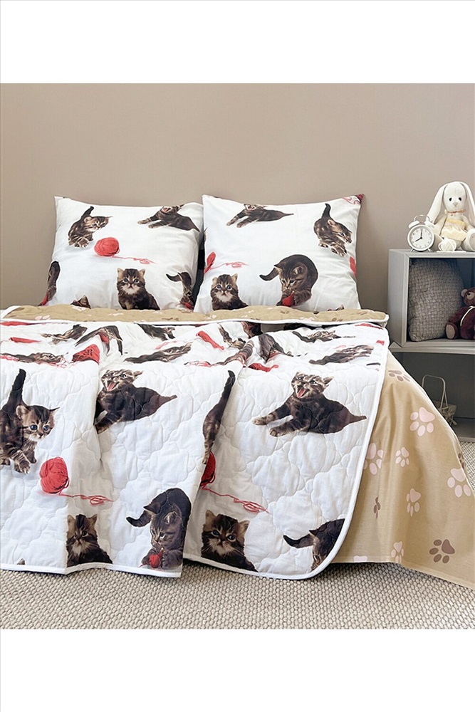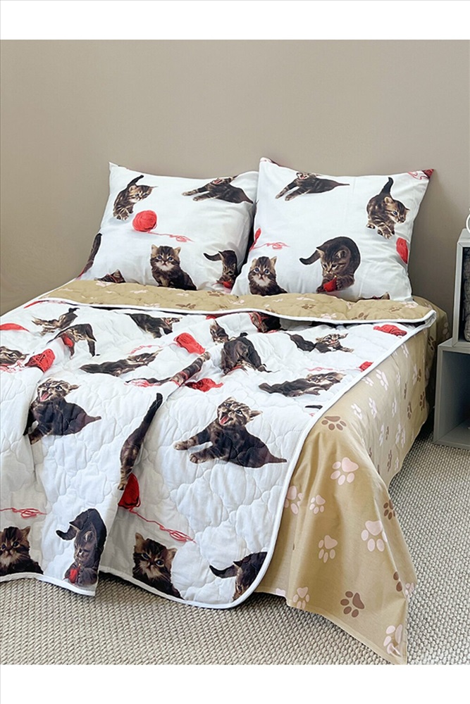 Уникальность набора в том, что в него входят: наволочки, простыня и легкое всесезонное одеяло. Это современное и очень удобное решение, которое идеально подходит тем, кто хочет быстро застилать кровать. Покупая постельные комплекты с одеялом вы экономите на покупке отдельного одеяла. Так же одеяло можно использовать как покрывало, используя его с двух сторон. Комплект легко стирается в обычной машине. Состав комплекта: поплин плотностью 110 г/м2 (100% хлопок), наполнитель - синтепон 150 г/м2 Края одеяла обработаны окантовочным материалом, наволочки клапан Комплектация и размеры: Набор 1,5 сп. - Одеяло 205х142, Простыня 215х150 см (±3 см) 1 шт, Наволочка 70х70 см (±1 см) 2 шт