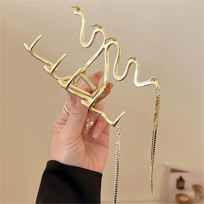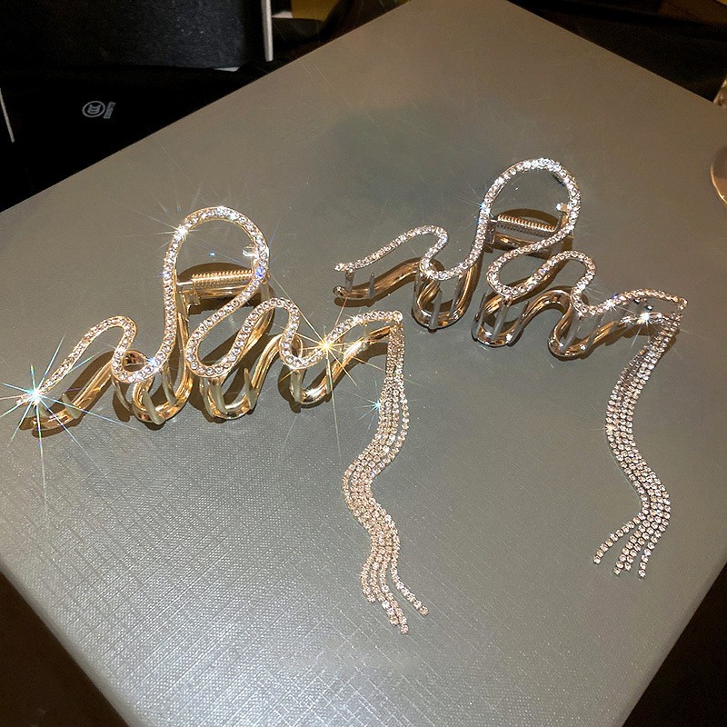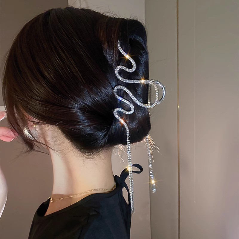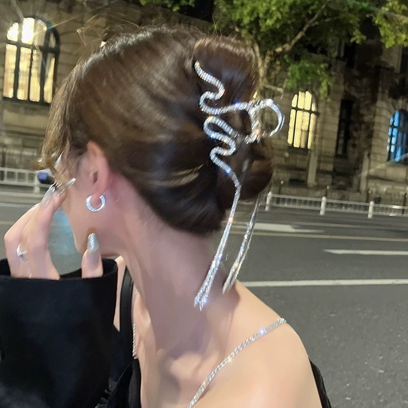 Красивый крабик для волос в форме серебристого зиг-зага с подвесками прекрасно дополнит Ваш образ.