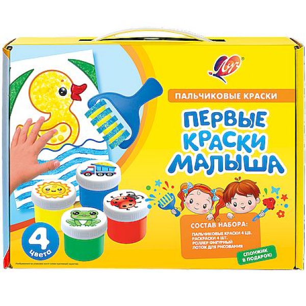 Набор пальчиковых красок "Кроха" 4 цв. с аксессуарами "Первые краски малыша" - это замечательный вариант подарка для малыша, которые только начинают знакомиться с увлекательным творческим процессом рисования красками.