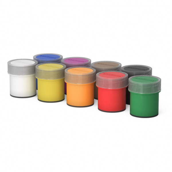 Пальчиковая гуашь обладают более густой структурой, чем традиционная гуашь — это не позволяет растекаться краске, если баночка случайно упадет.