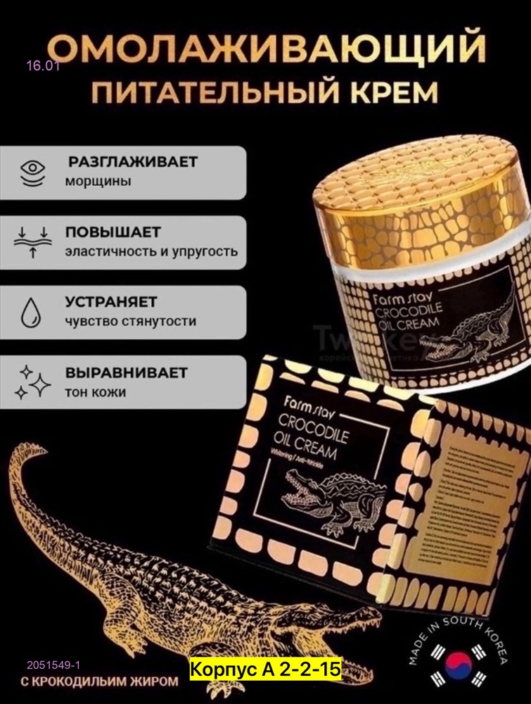 Крем для лица увлажняющий и омолаживающий с жиром крокодила