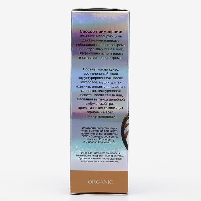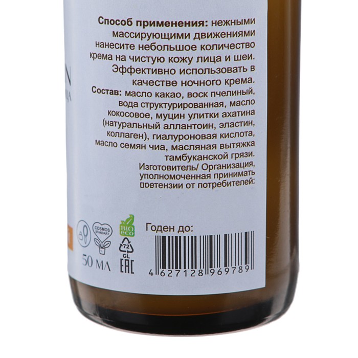 Габариты: 4 x 4 x 12,8 Страна: Россия В боксе: 63 шт Состав: См. на упаковке Материалы: см. на упаковке Фасовка: по 1 шт Индивидуальная упаковка: Цветная картонная коробка Сертификат: ЕАС Вес, г/Объём, мл: 50 Темпер. ограничение НЕ НИЖЕ ℃: 0 Тип кожи: Зрелая Возраст: Для всех возрастов Применение: Универсальный Улиточный крем с муцином ахатины и гиалуроновой кислотой — это активное антивозрастное средство для кожи лица. Оно улучшает текстуру, плотность кожи, ускоряет регенерацию, питает, увлажняет, снимает раздражение и воспаление, придаёт матовость, борется с расширенными порами. Разглаживает мимические и глубокие морщины, стимулирует клеточное дыхание. Муцин улитки повышает скорость регенерации кожи, наполняет клетки влагой изнутри, подтягивает овал лица, выравнивает цвет и устраняет пигментацию, поддерживает на оптимальном уровне естественный pH-баланс кожи, защищает от воздействия токсинов и свободных радикалов. Способ применения: нежными массирующими движениями нанесите небольшое количество средства на чистую кожу лица и шеи. Рекомендуется использовать в качестве ночного крема. Состав: масло какао, воск пчелиный, вода структурированная, масло кокосовое, улиточная слизь ахатины (натуральный аллантоин, эластин и коллаген), гиалуроновая кислота, масло семян чиа, масляная вытяжка тамбуканской лечебной грязи. Комментарии к товару
