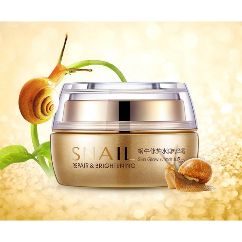 Крем для лица Bioaqua Snail Repair & Brightening с муцином улитки — высокоэффективный антивозрастной препарат для ухода за увядающей кожей. Данное средство подходит для устранения таких проблем, как постакне и пигментация отдельных участков кожи. С его помощью нормализуются обменные процессы. Крем для лица с секрецией улитки BIOAQUA оказывает глубоко увлажняющее, омолаживающее действие. Молекулы препарата затрагивают внутреннюю структуру клеток, питают их микроэлементами, насыщают витаминами. Крем с улиточной слизью Bioaqua эффективно борется с дряблостью верхних слоев кожи. Имеет бархатистую текстуру с приятным легким ароматом. Поступает в продажу в красивых стеклянных банках емкостью 50 миллилитров.