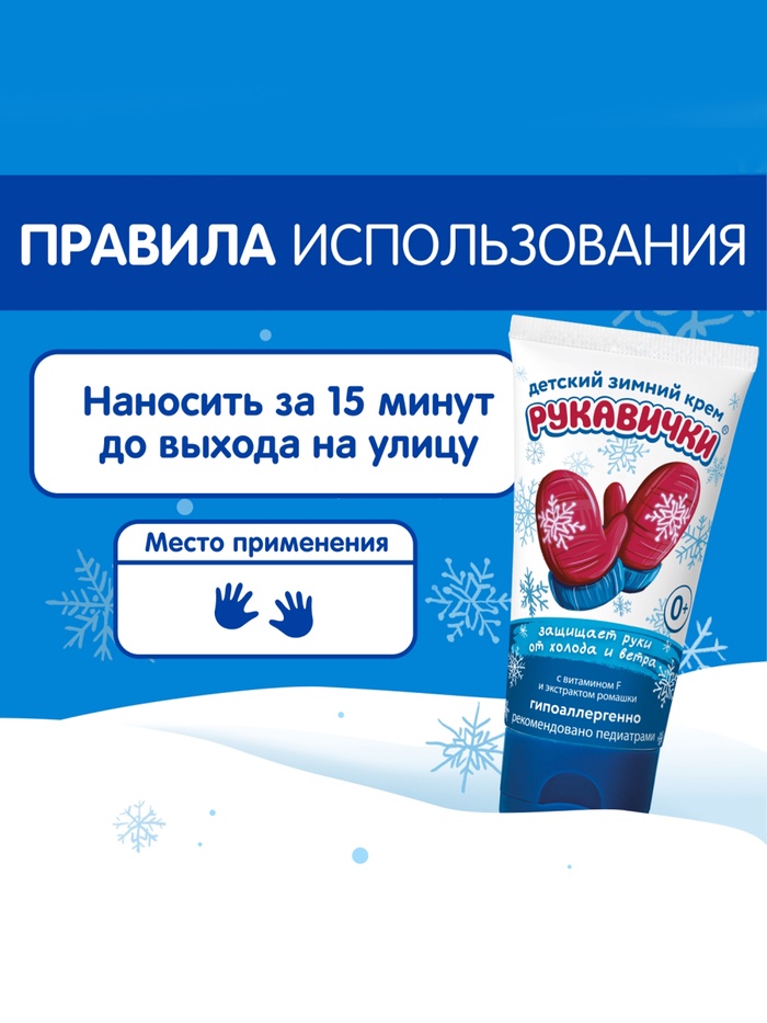 Гипоаллергенный состав крема эффективно защищает ручки ребенка в холодные дни, предупреждает появление цыпок.