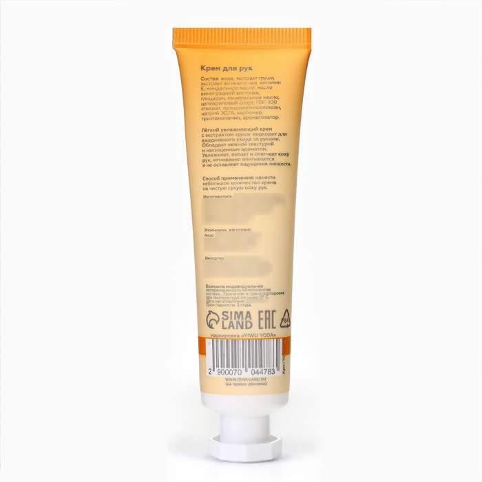 Страна: Китай В боксе: 1000 шт Состав: См. на упаковке Материалы: см. на упаковке Фасовка: по 1 шт Индивидуальная упаковка: Без упаковки Габариты товара: 11,5 см × 4 см × 3 см Сертификат: ЕАС Вес, г/Объём, мл: 30 Темпер. ограничение НЕ НИЖЕ ℃: 0 Лёгкий увлажняющий крем подходит для ежедневного ухода за руками. Обладает нежной текстурой и насыщенным ароматом. Увлажняет, питает и смягчает кожу рук, мгновенно впитывается и не оставляет ощущения липкости. Экстракт зеленого чая содержит большое количество антиоксидантов и витаминов. Обладает противовоспалительным и антибактериальным действием, защищает кожу от свободных радикалов. Активизирует клеточный обмен, восстанавливает повреждённые клетки и повышает упругость кожи. Способ применения: нанести небольшое количество крема на чистую сухую кожу рук. Состав: вода, экстракт зеленого чая, глицерин, минеральное масло, цетеариловый спирт, ПЭГ-100 стеарат, полидиметилсилоксан, натрий ЭДТА, карбомер, триэтаноламин, метилпарабен, пропилпарабен, ароматизатор груши. Комментарии к товару