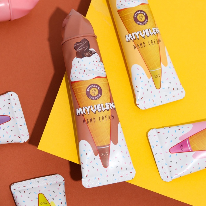 Лёгкий увлажняющий крем с ароматом наивкуснейшего мороженого. Яркий и оригинальный тюбик крема в виде мороженого вызывает восторг у любого, кому попадает в рукию, по мимо этого, он имеет специальный необычный наконечник, который позволяет контролировать количество крема при нанесении на руки. Крем замечательно питает, увлажняет, смягчает, оживляет и тонизирует кожу рук, делая ее еще более нежной, гладкой и сияющей. Крем быстро впитывается, обладает разглаживающими свойствами. Каждый крем имеет свой неповторимый аромат. После применения кожа становится невероятно мягкой, бархатистой, при этом без липкого или жирного эффекта. Подходит для ежедневного ухода за руками.