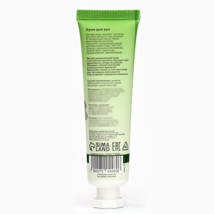 Страна: Китай В боксе: 1000 шт Состав: См. на упаковке Материалы: см. на упаковке Фасовка: по 1 шт Индивидуальная упаковка: Без упаковки Габариты товара: 11,5 см × 4 см × 3 см Сертификат: ЕАС Вес, г/Объём, мл: 30 Тематика праздника: 8 Марта Адресат: Без адресата Темпер. ограничение НЕ НИЖЕ ℃: 0 Фиксированная цена: Да Лёгкий увлажняющий крем подходит для ежедневного ухода за руками. Обладает нежной текстурой и насыщенным ароматом. Увлажняет, питает и смягчает кожу рук, мгновенно впитывается и не оставляет ощущения липкости. Экстракт зеленого чая содержит большое количество антиоксидантов и витаминов. Обладает противовоспалительным и антибактериальным действием, защищает кожу от свободных радикалов. Активизирует клеточный обмен, восстанавливает повреждённые клетки и повышает упругость кожи. Способ применения: нанести небольшое количество крема на чистую сухую кожу рук. Состав: вода, экстракт зеленого чая, глицерин, минеральное масло, цетеариловый спирт, ПЭГ-100 стеарат, полидиметилсилоксан, натрий ЭДТА, карбомер, триэтаноламин, метилпарабен, пропилпарабен, ароматизатор жасмина. Комментарии к товару