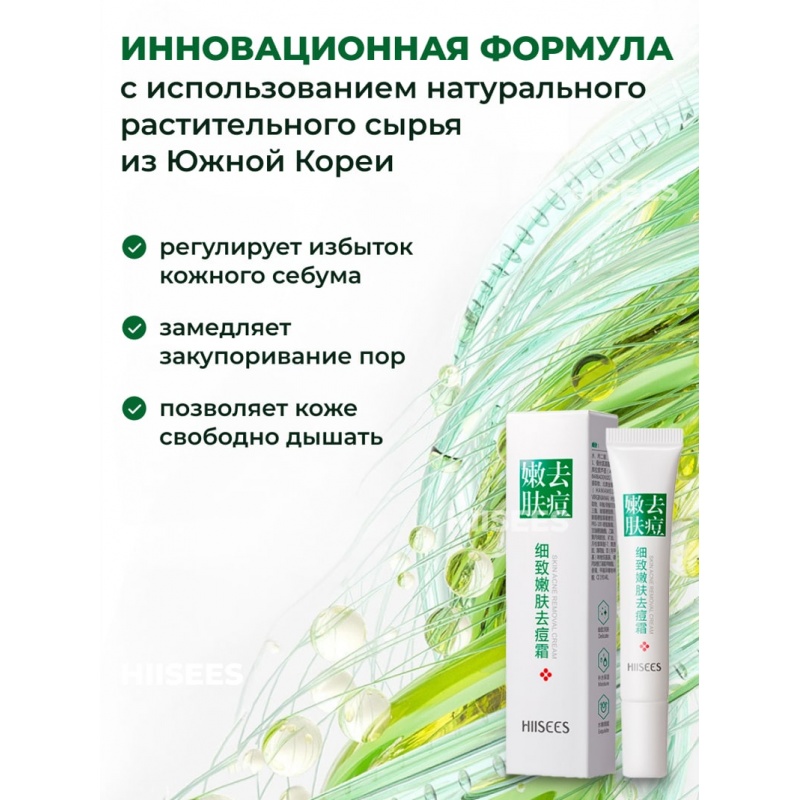 Лечебный крем Hiisees с растительными экстрактами разработан для борьбы с угревой сыпью и ее последствиями: рубцами, воспалениями, покраснениями. Компактный тюбик удобно брать с собой, нанося по мере необходимости на проблемные участки. Средство рекомендовано для повседневного использования в качестве третьего этапа терапии акне и постакне.