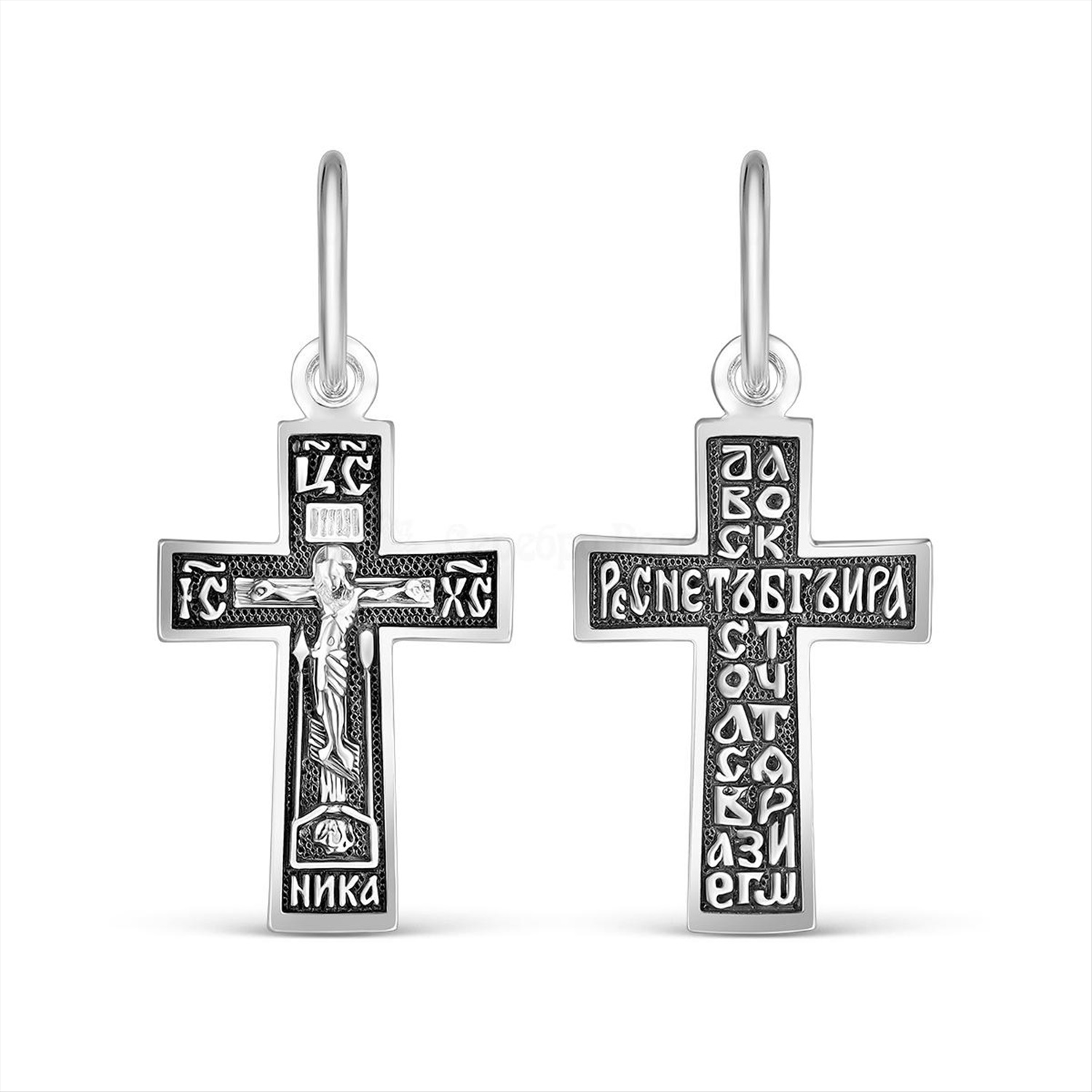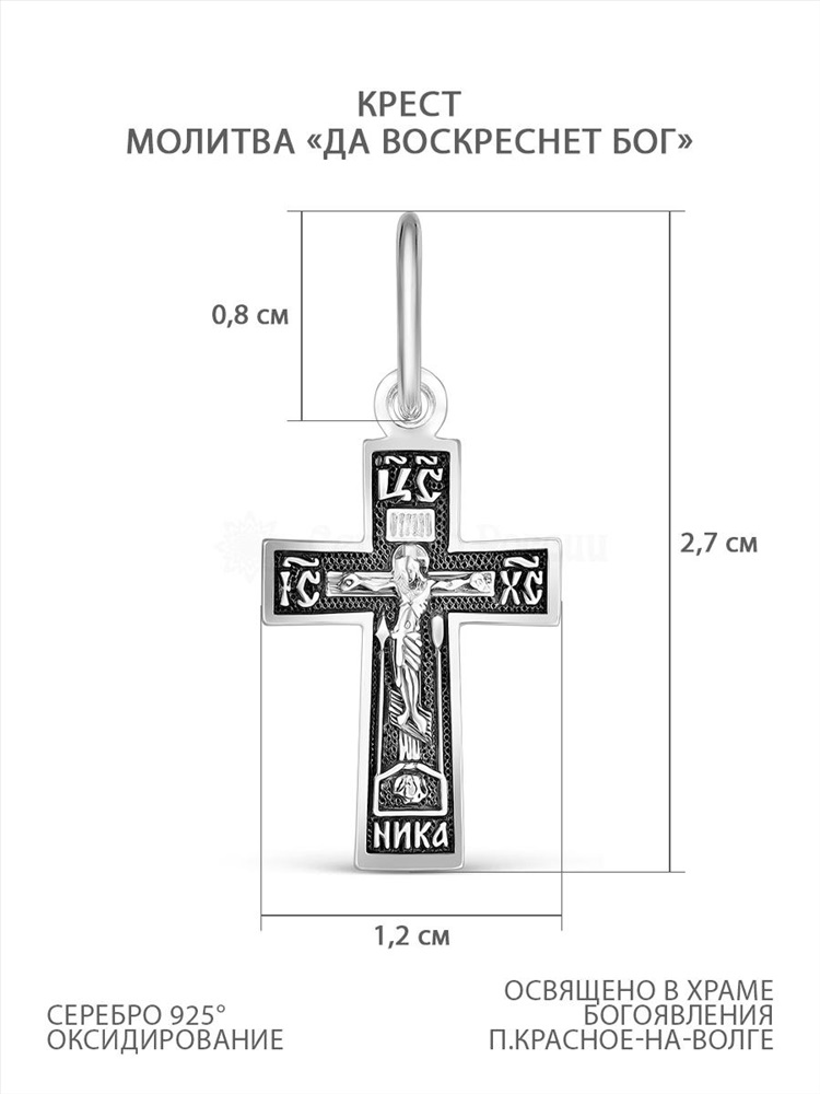 Крест из чернёного серебра с молитвой "Да воскреснет Бог" - 2,7 см 925 пробы К3-442ч