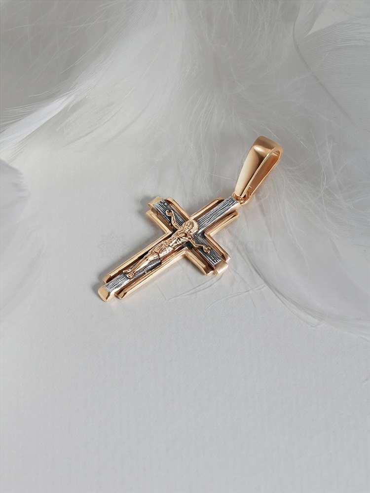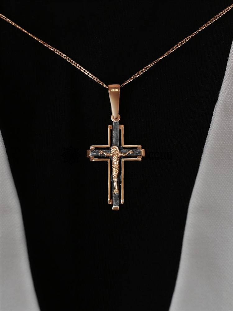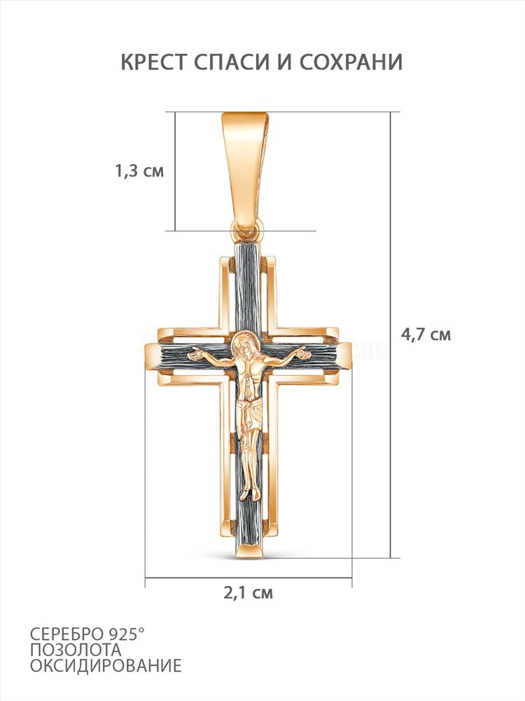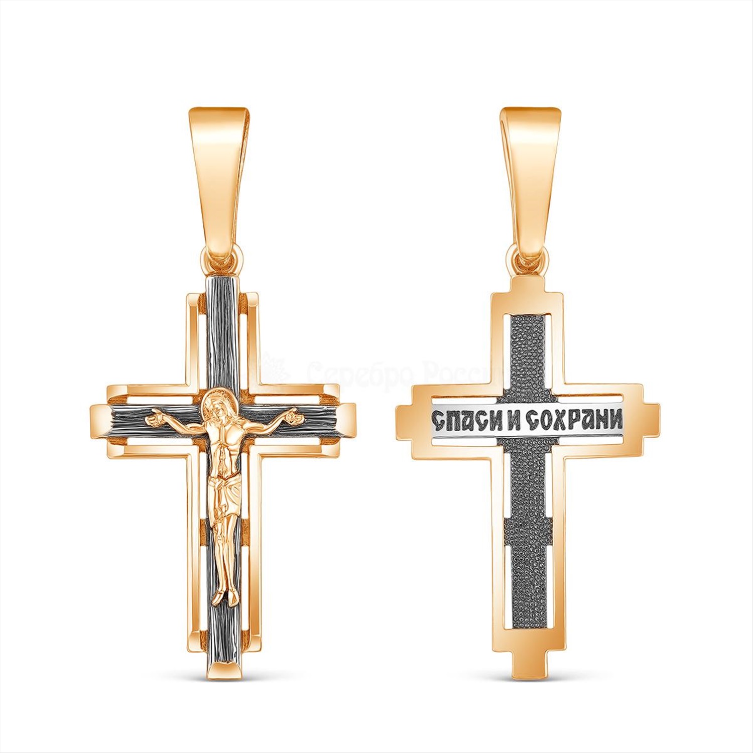 Крест из золочёного серебра с чернением - 4,7 см 925 пробы 3-287чз