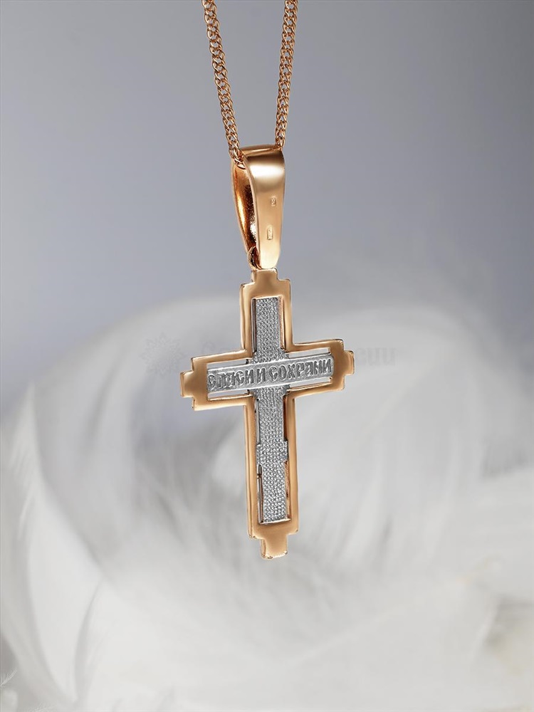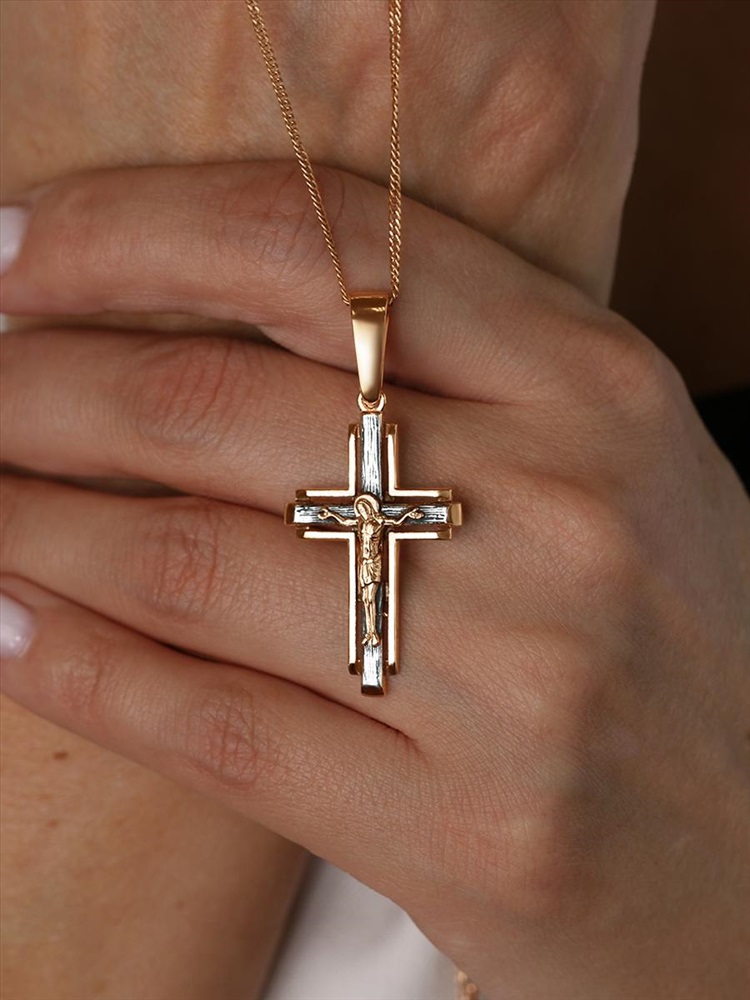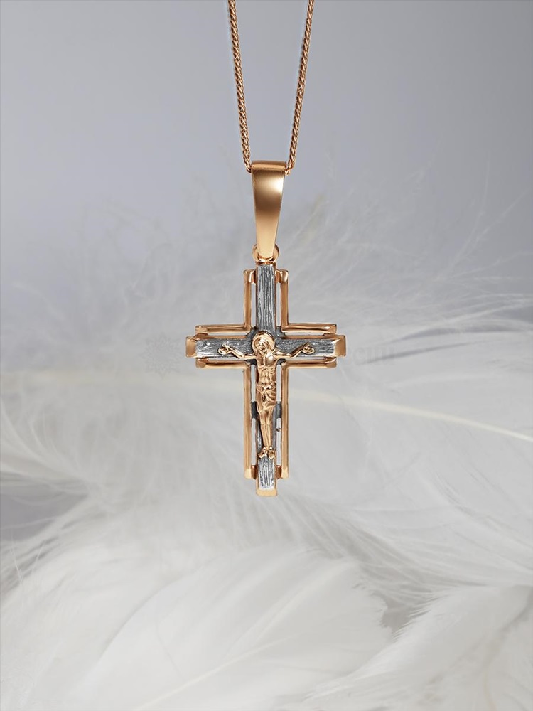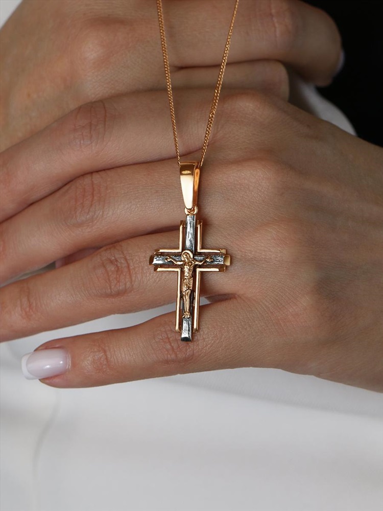 Крест из золочёного серебра с чернением - 4,7 см 925 пробы 3-287чз