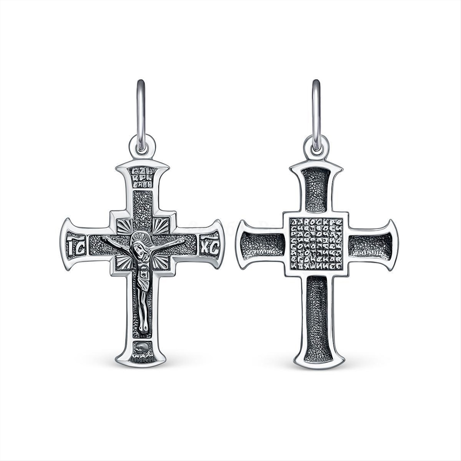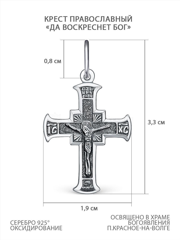 Крест православный из чернёного серебра - Да воскреснет Бог 3,3 см 2-309ч