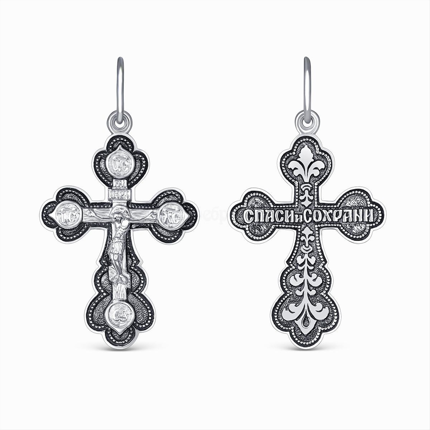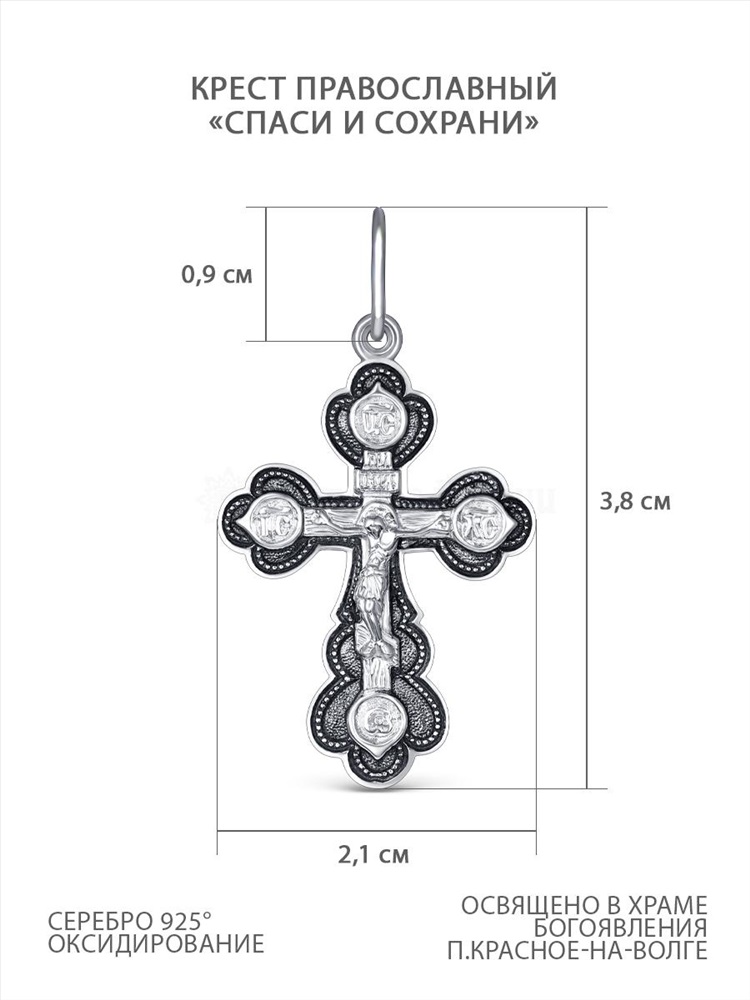 Крест православный из чернёного серебра - Спаси и сохрани 3,8 см 925 пробы Г-09чч