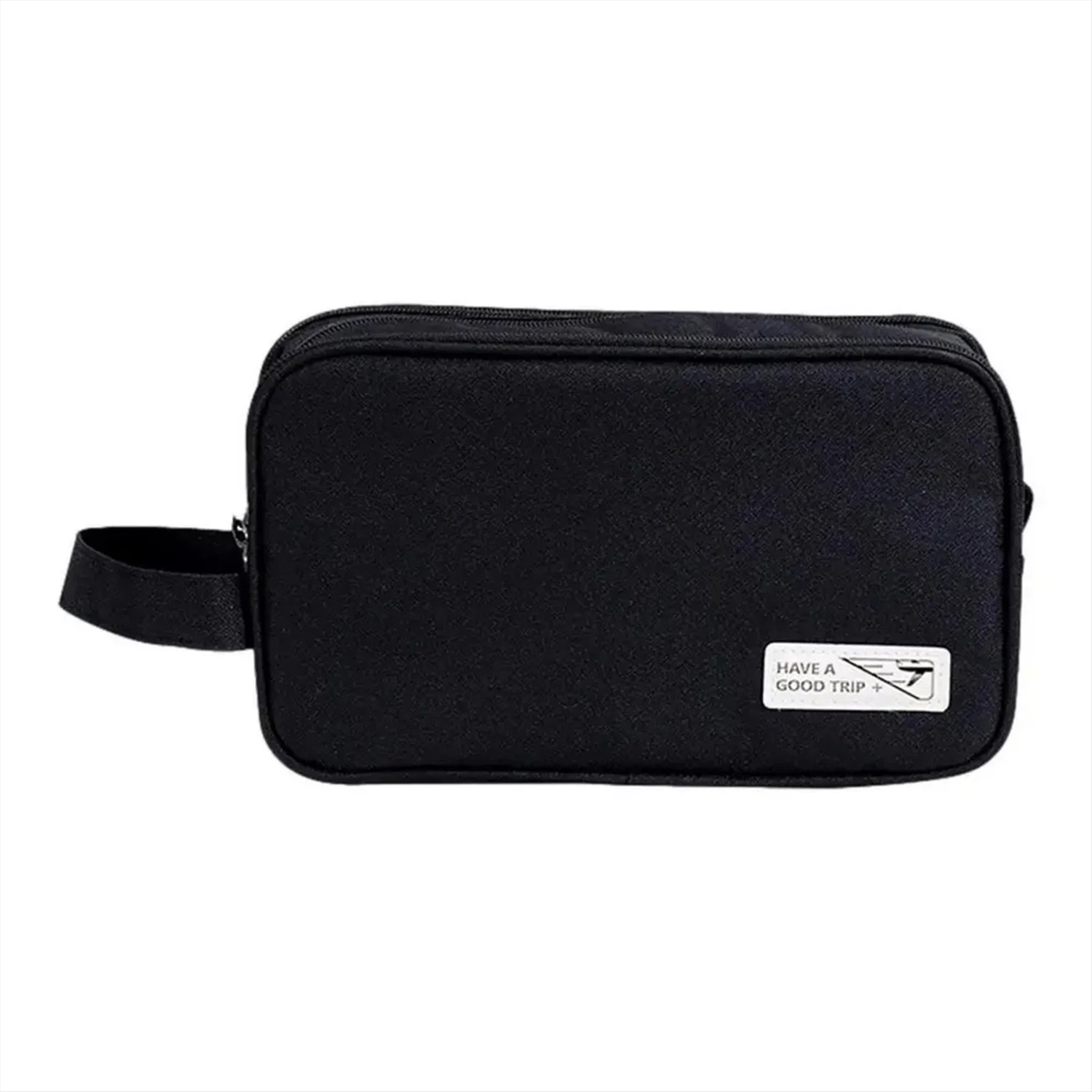 Дорожная косметичка Travel Have a good trip — идеальный спутник для тех, кто ценит стиль и удобство в путешествиях. Этот аккуратный аксессуар объединяет в себе функциональность и строгий лаконичный дизайн. Водонепроницаемая сумка для туалетных принадлежностей оснащена боковой ручкой, которая обеспечивает комфорт при переноске, а компактный размер позволяет легко поместить косметичку в рюкзак, дорожную сумку или чемодан. Внутреннее пространство продумано до мельчайших деталей: специальная организация карманов позволяет удобно разместить косметику, парфюмерию и аксессуары, а застежка на молнии надежно закрепляет все содержимое.