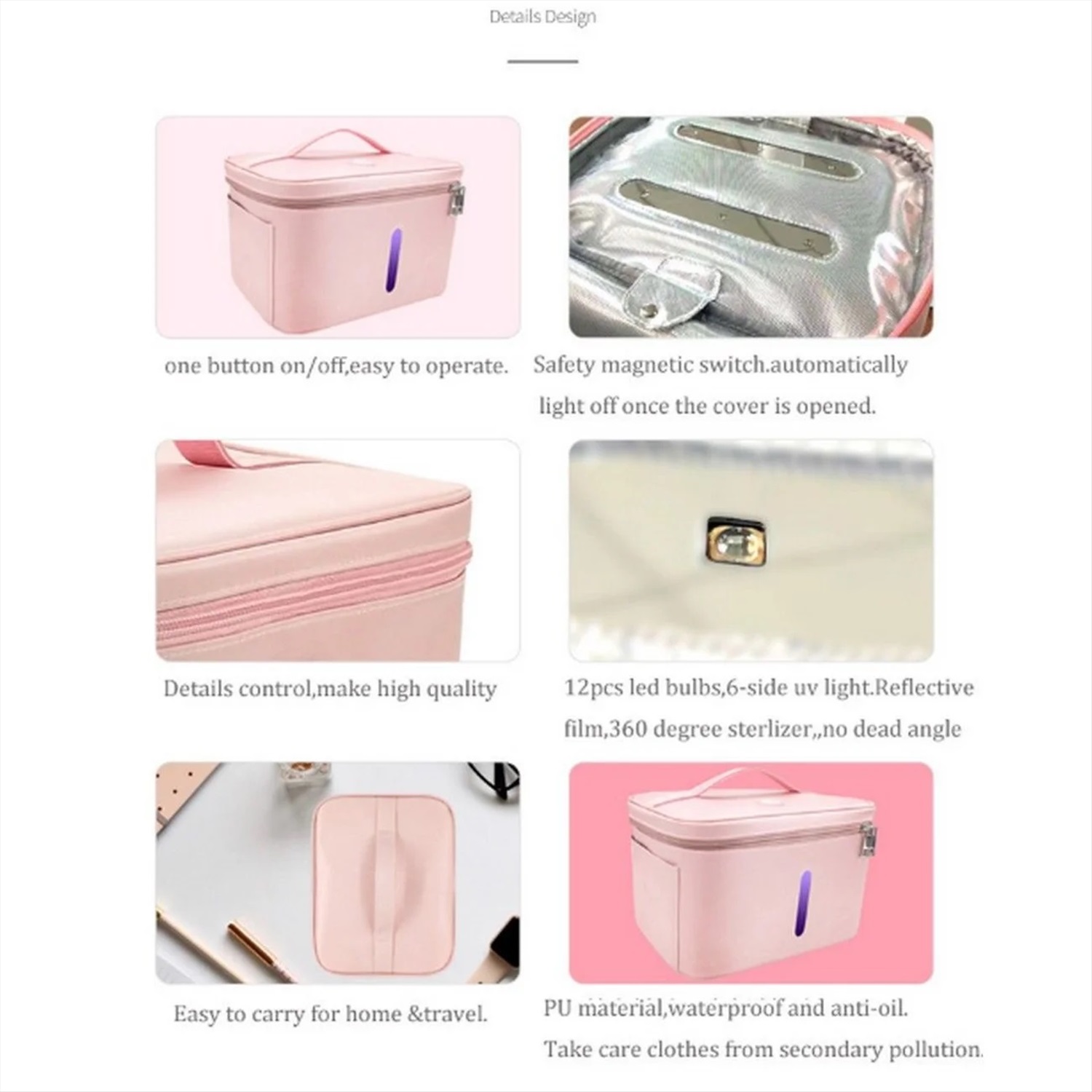 Благодаря 12 встроенным ультрафиолетовым лампочкам, сумка-стерилизатор убивает 99.9% бактерий и микробов всего за 3 минуты! Это невероятно! Но ультрафиолетовое излучение способно избавить предмет даже от запаха плесени! Отсутствие радиационного излучения, химического остатка, ртути и озона делает стерилизацию экологически чистой и безопасной процедурой.