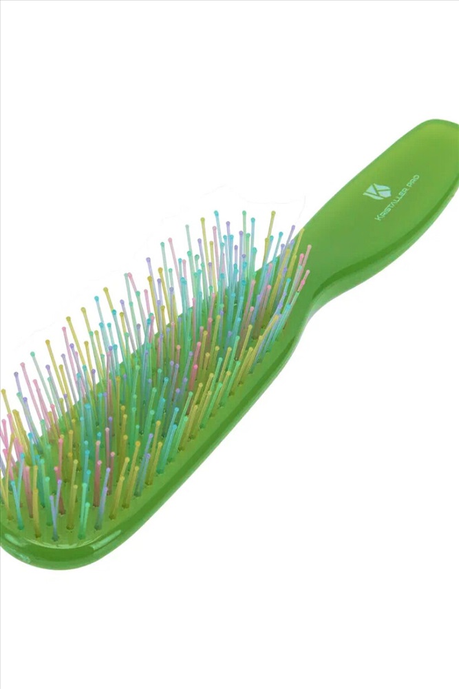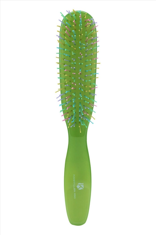 ID товара: 1133500 Сезон: Демисезон Вес нетто: 0.068 Д-Ш-В: 26.5/7.5/3 Назначение: Волосы Производитель: Kristaller Количество в упаковке: 1 шт. Страна бренда: Россия Страна производства: Китай Kristaller "Нефрит 2041" — это массажная расческа с удлинёнными гибкими нейлоновыми щетинками, созданная для деликатного ухода за волосами любого типа. Элегантный нефритовый оттенок корпуса делает аксессуар не только функциональным, но и стильным дополнением к вашей косметичке. Удлинённые гибкие щетинки мягко распутывают даже сильно спутанные волосы, не ломая и не выдёргивая их. Преимущества и особенности: Длина 22 см — удобный формат для ежедневного использования Длинные гибкие щетинки из нейлона — легко проникают вглубь волос, распутывая без повреждений Массажный эффект — стимулирует кровообращение кожи головы, улучшая питание волосяных луковиц Антистатический пластик — уменьшает наэлектризованность волос Подходит для влажных и сухих волос — идеальна после душа или СПА-процедур Подходит для любых типов волос — тонких, густых, прямых, волнистых, нарощенных и детских Легко очищается — цельный пластиковый корпус не боится воды и быстро моется Комментарии к товару