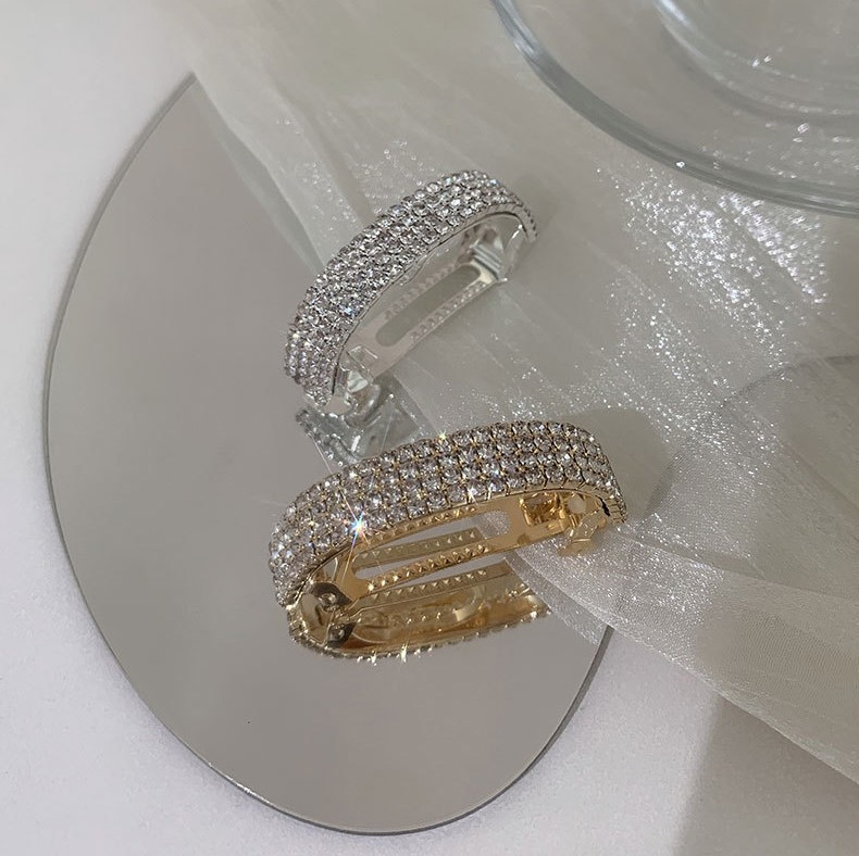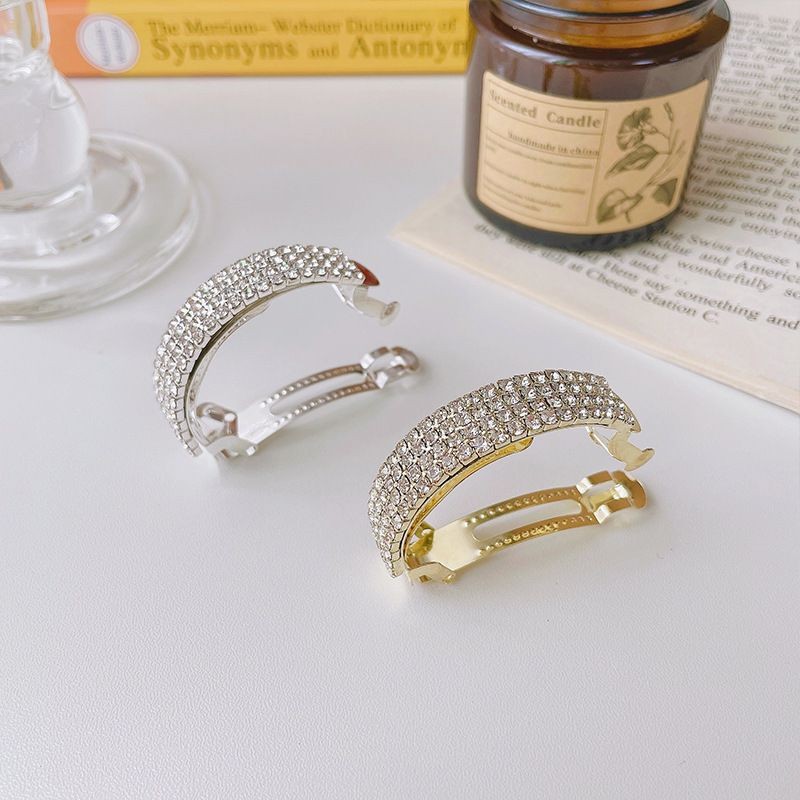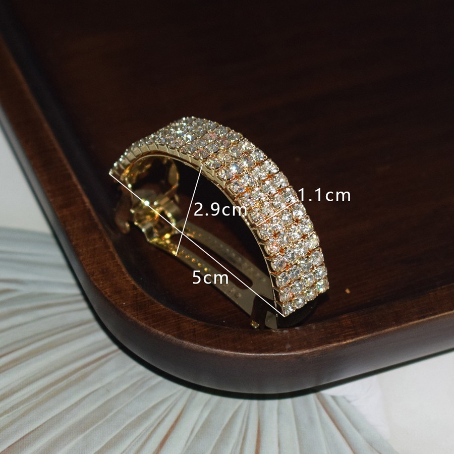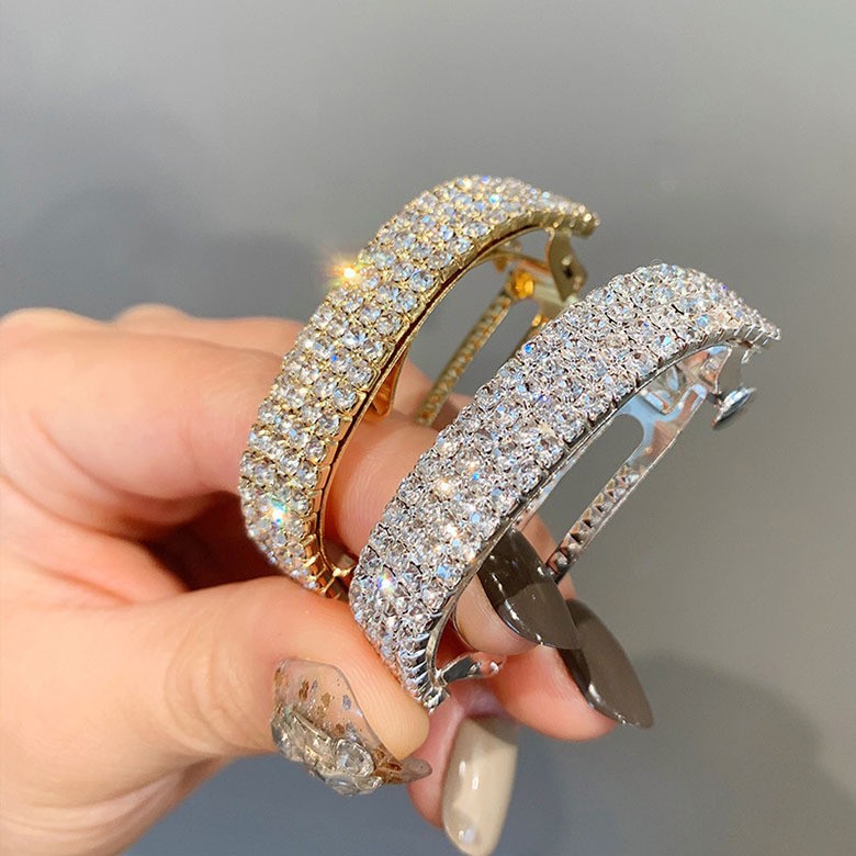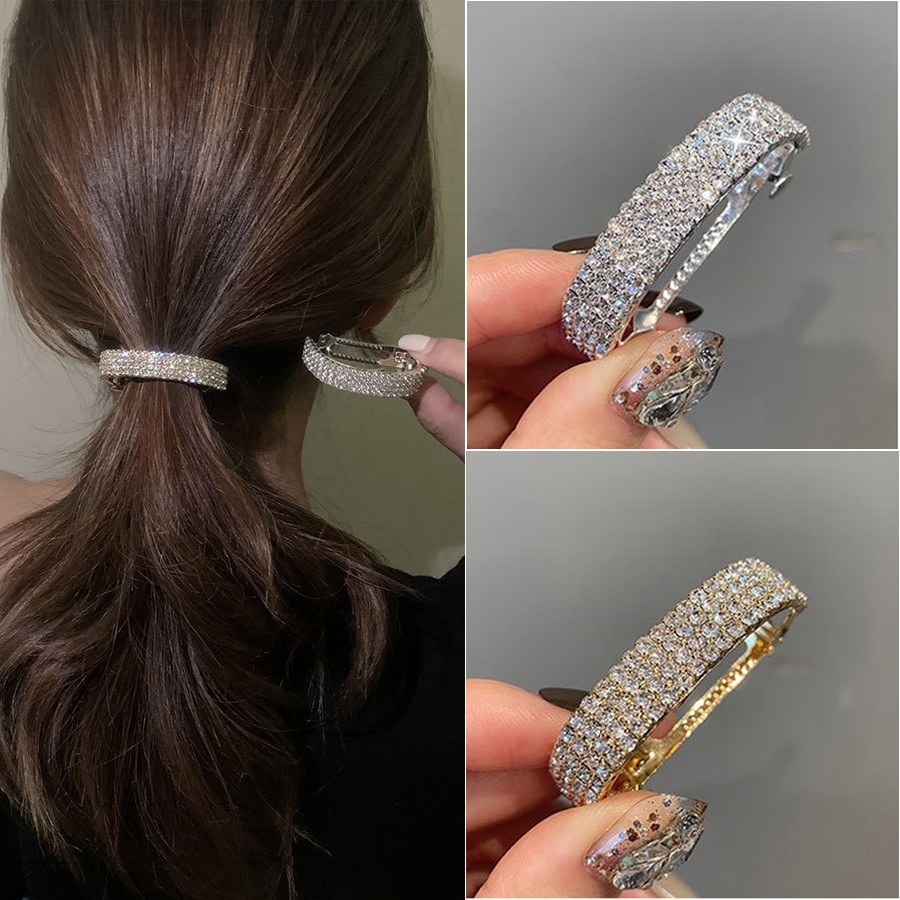 Заколка автомат для хвоста - стильный и модный аксессуар для волос, по виду выглядит как полукольцо со стразами.