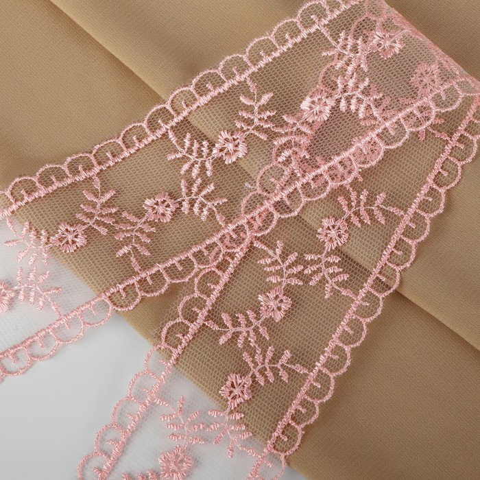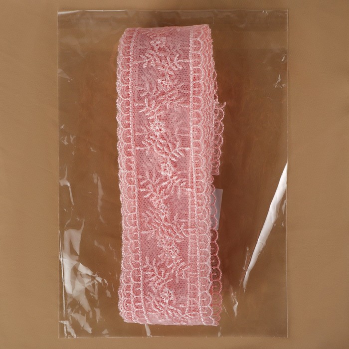 Розовое кружево на сетке шириной 50 мм добавит нежности и шарма вашему творчеству. Это изделие из полиэстера станет отличным решением для декорирования одежды, оформления скрапбукинга или создания уникальных аксессуаров. Длина 11 метров позволит вам реализовать даже самые смелые идеи в декоративно-прикладном искусстве.