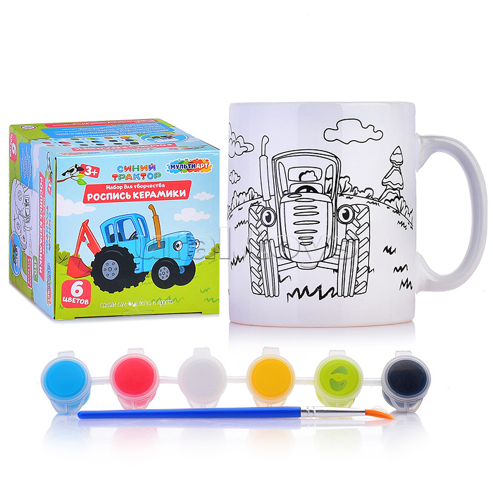 Кружка для росписи "Синий трактор" (краски, кисточка)