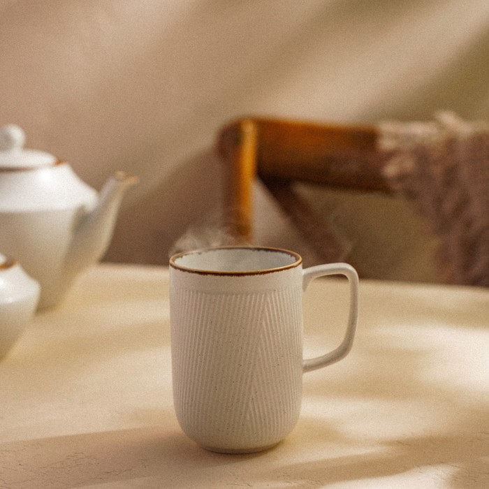 Габариты: 10,5 x 8,5 x 11,5 Страна: Китай В боксе: 36 шт Состав: Фарфор Материалы: фарфор Фасовка: по 1 шт Индивидуальная упаковка: Картонная коробка Габариты товара: 11 см × 7,5 см × 11 см Сертификат: СТР Набор: Нет Цвет: Белый Объём, мл: 350 Тематика: Полоски, полоса Рисунок: Да Материал: Фарфор Дополнительный аксессуар: Без аксессуаров Индивидуальная упаковка: Нет Можно мыть в посудомоечной машине: Да Можно использовать в СВЧ-печи: Да Текстура: Гладкая Особенности: Без особенностей Матовая поверхность: Да Пусть ваш утренний ритуал с чашкой чая или кофе станет особенным с кружкой «Волна в камне». Эта фарфоровая кружка, объёмом 350 мл, удивляет не только своей элегантной формой, но и приятным на ощупь матовым покрытием. Её дизайн, вдохновленный природными мотивами, создает ощущение гармонии и умиротворения, что делает каждый глоток ещё более приятным. Гладкая текстура и тонкие полосы рисунка добавляют кружке минималистичности, что отлично подойдет для любого стиля интерьера — от классики до современного минимализма. Белый цвет кружки подчеркивает её универсальность, позволяя сочетаться с любыми столовыми сервизами.