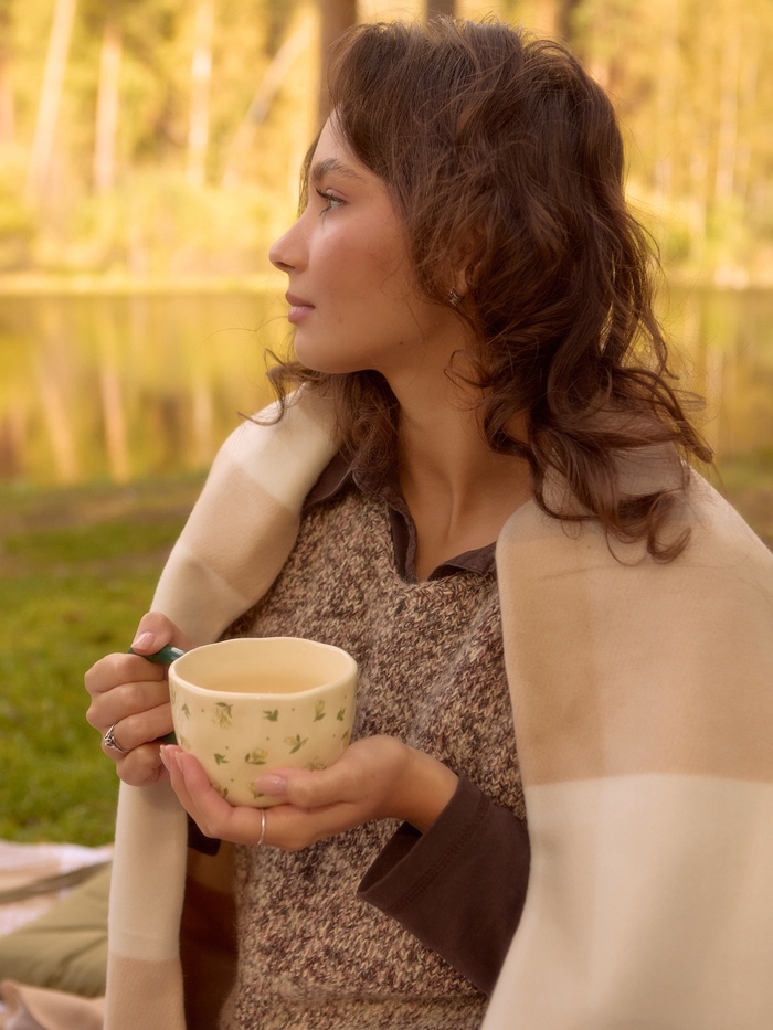 - Керамическая чашка с гладкой поверхностью — приятно ложится в руку, не скользит.