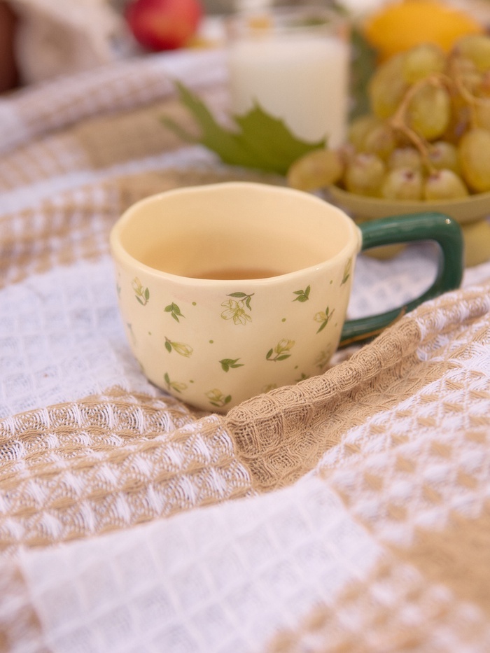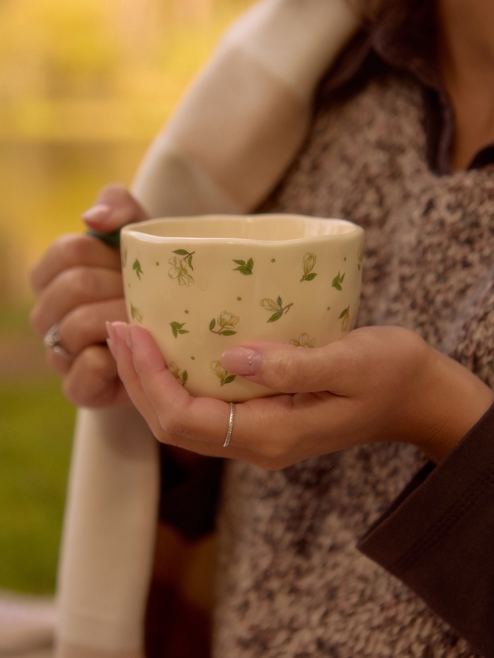 Кружка с цветочным узором — это тихий аккорд в повседневной суете. Бежевый цвет, нежные растительные мотивы и объём 350 мл создают ощущение уюта с первого глотка. Она подходит для чая, кофе или какао — для тех, кто начинает день медленно, с вниманием к деталям.