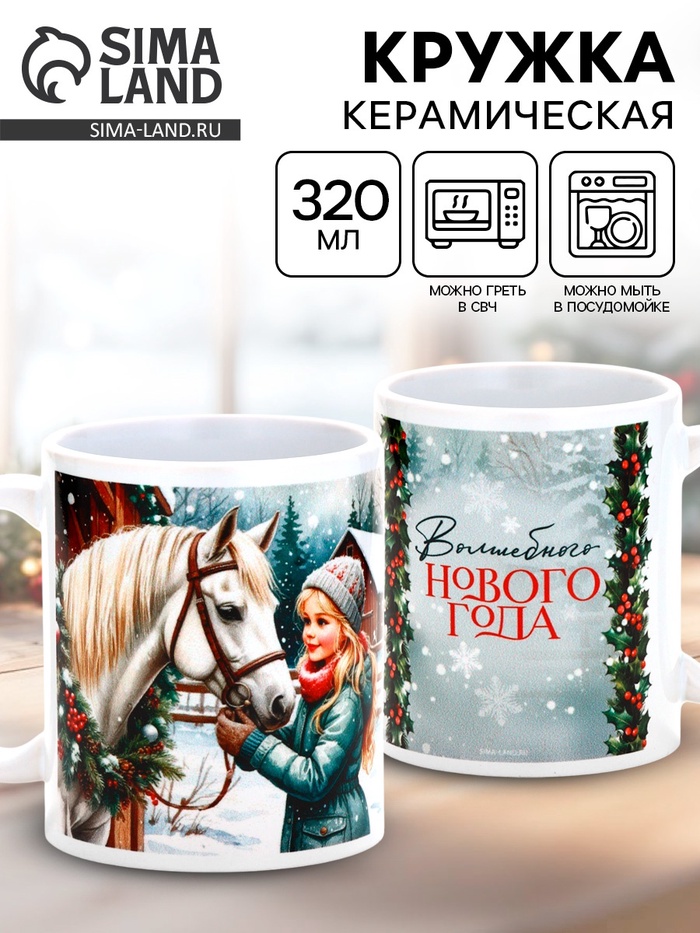Габариты: 8 x 12 x 9,5 Страна: Китай В боксе: 36 шт Состав: Керамика Материалы: керамика Фасовка: по 1 шт Индивидуальная упаковка: Без упаковки Сертификат: СТР Набор: Нет Цвет: Разноцветный Объём, мл: 320 Тематика: Новогодняя, Животный мир Рисунок: Да Символ года: Символ года 2026 (Лошадь) Тематика праздника: Новый год Материал: Керамика Дополнительный аксессуар: Без аксессуаров Индивидуальная упаковка: Нет Можно мыть в посудомоечной машине: Да Можно использовать в СВЧ-печи: Да Текстура: Гладкая Особенности: Сублимация Матовая поверхность: Нет Новогодняя керамическая кружка 320 млСоздайте праздничное настроение с каждой чашкой чая или кофе! Эта керамическая кружка объемом 320 мл с новогодним дизайном станет вашим верным спутником в зимние вечера. Яркое и долговечное изображение будет радовать вас весь праздничный сезон. Идеальный размер для любимых горячих напитков — достаточно вместительная, чтобы насладиться вкусом, и удобная для повседневного использования. Качественная керамика отлично сохраняет тепло, даря комфорт в холодные дни. Прекрасный подарок коллегам, друзьям или себе для создания новогодней атмосферы. Начните утро с праздничной нотки и заряжайтесь зимним настроением весь день! Комментарии к товару