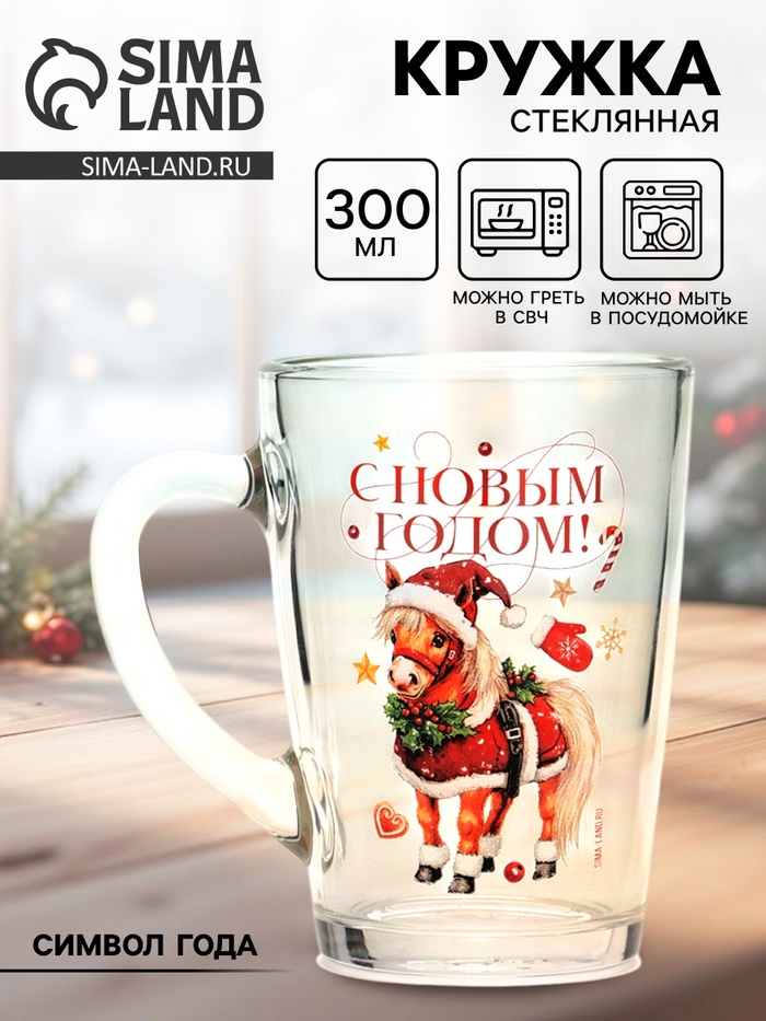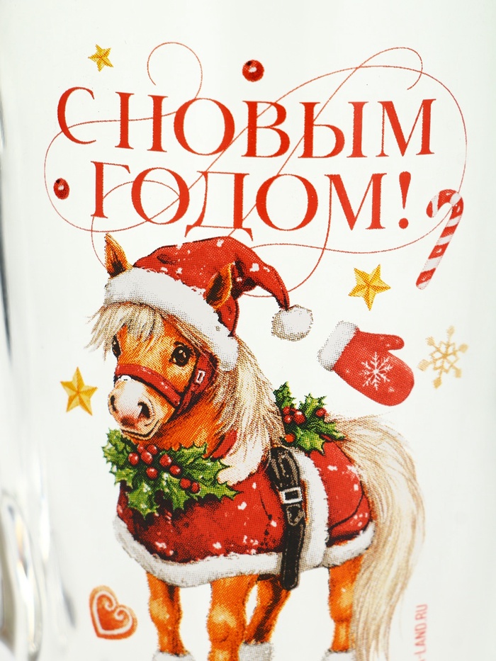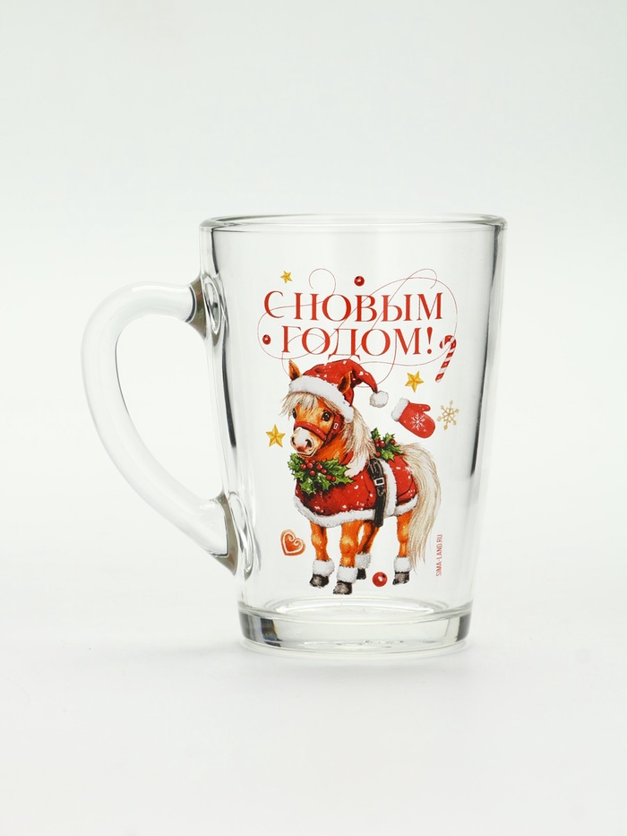 Габариты: 8 x 11 x 11 Доставка: Платная Страна: Россия В боксе: 20 шт Состав: Стекло Материалы: стекло Фасовка: по 1 шт Индивидуальная упаковка: Без упаковки Сертификат: СТР Набор: Нет Цвет: Прозрачный Объём, мл: 300 Тематика: Надписи, цифры, буквы, Новогодняя, Животный мир Рисунок: Да Символ года: Символ года 2026 (Лошадь) Тематика праздника: Новый год Материал: Стекло Дополнительный аксессуар: Без аксессуаров Индивидуальная упаковка: Нет Можно мыть в посудомоечной машине: Да Можно использовать в СВЧ-печи: Да Текстура: Гладкая Особенности: Ручная работа, Деколь Матовая поверхность: Нет Кружка «С Новым годом» — это добрая улыбка, замороженная в стекле. Прозрачное основание, как чистое утро после снегопада, и на нём — пони в новогоднем костюме Деда Мороза: не карикатура, не шутка, а трогательная, чуть неуклюжая попытка быть волшебной. Шапка с кисточкой чуть съехала, а глаза — полные уверенности. Надпись ”С Новым годом” расположена просто, без восклицаний — как подпись под семейной фотографией: не идеально, зато по-настоящему. Особенности
