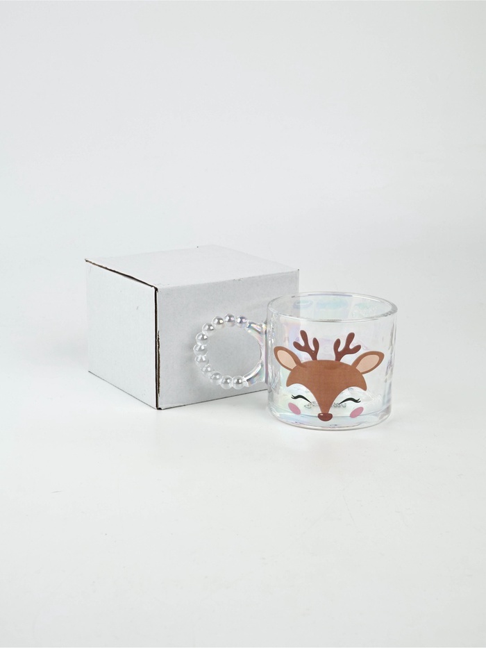 Новогодняя стеклянная кружка с формовой ручкой и голографией — идеальный выбор для новогодних праздников. Объём 300 мл и необычный дизайн кружки делают эту кружку прекрасным подарком для ваших друзей и близких.