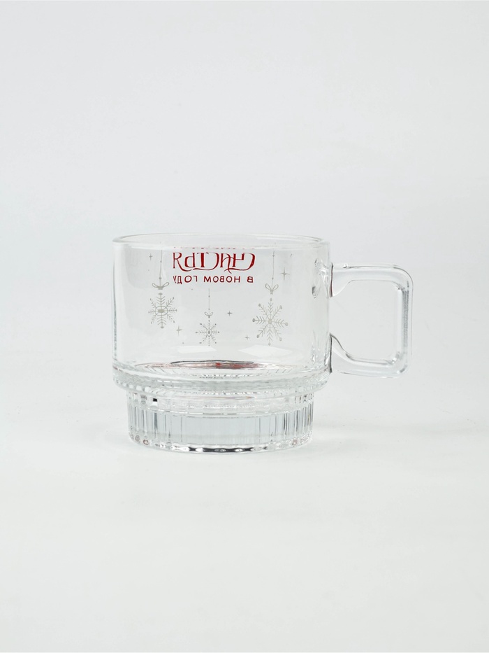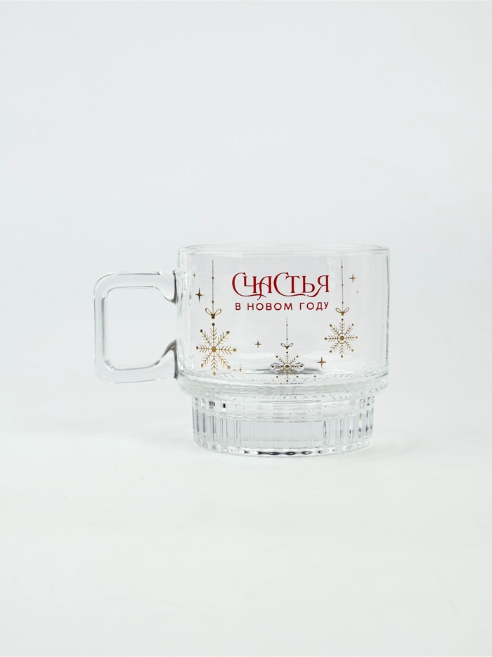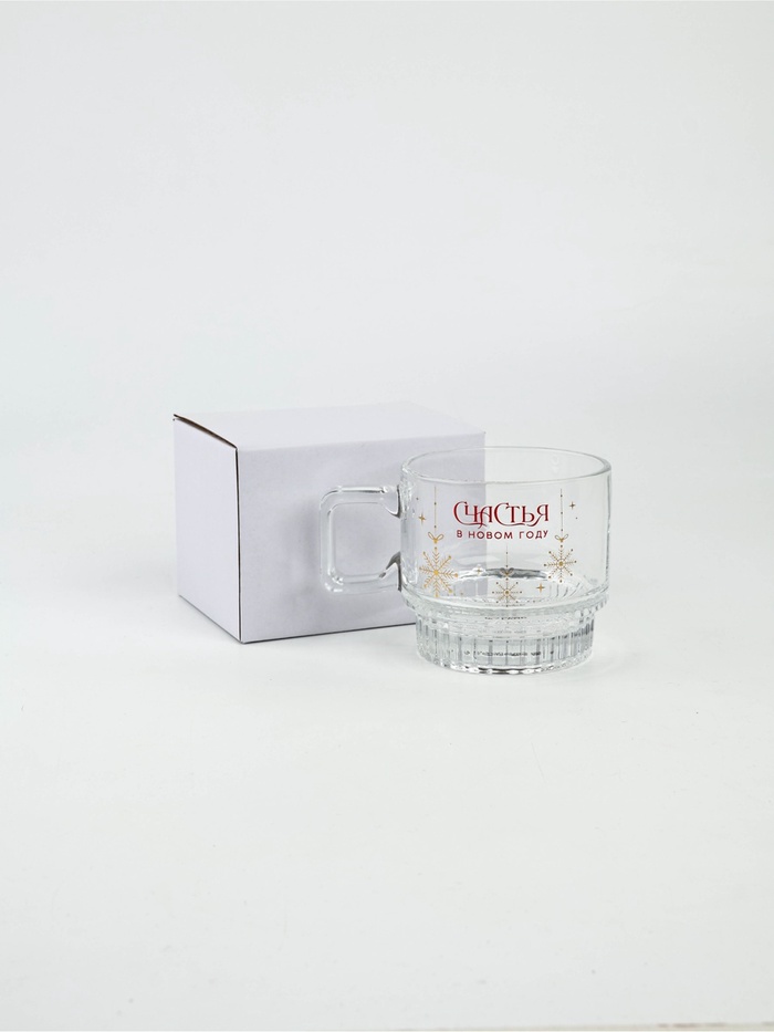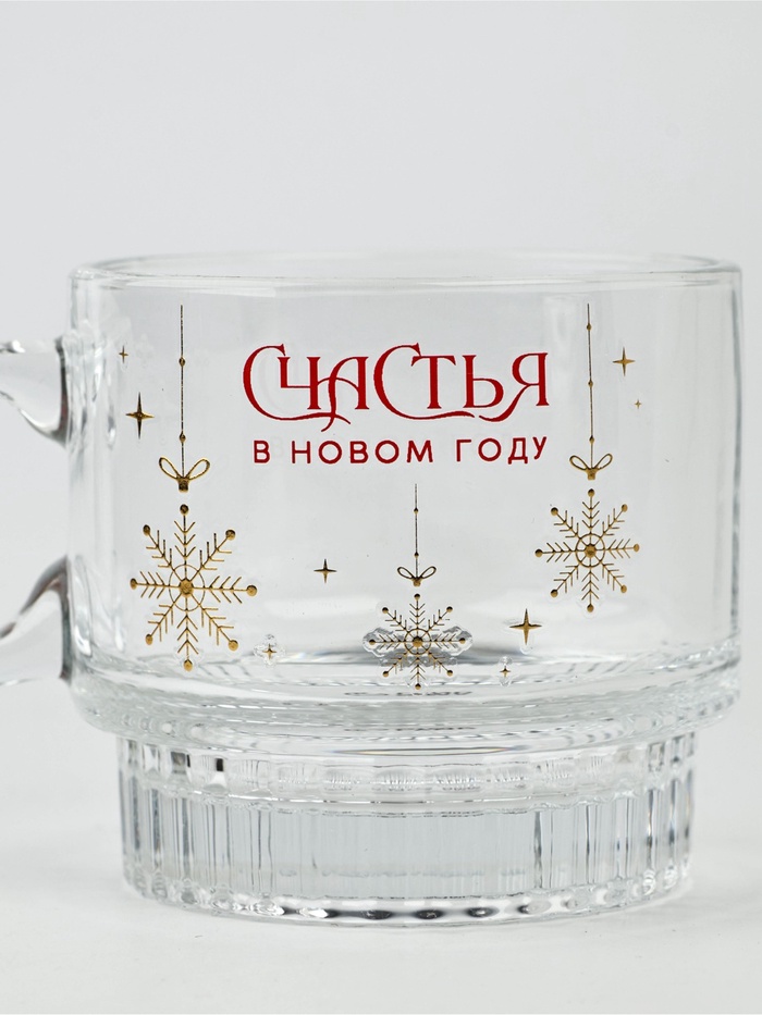 Новогодняя кружка стеклянная объёмом 270 мл — это стильный и практичный аксессуар для вашей кухни или офиса.