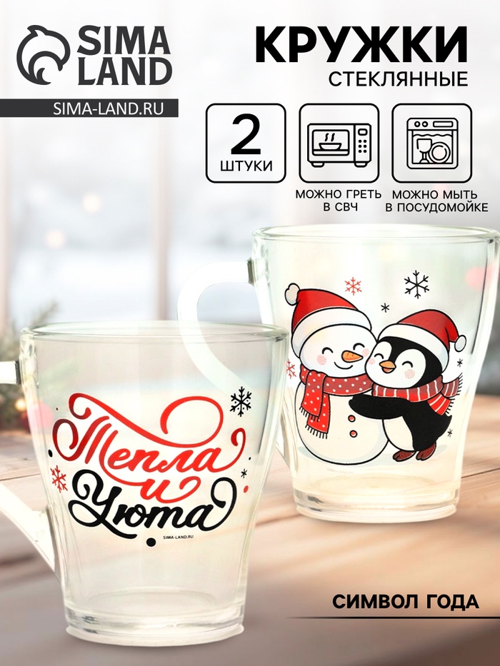 Набор кружек «Персонажи» — это тихий дуэт зимнего уюта, заключённый в прозрачное стекло. Две кружки — два героя одного вечера: на первой — пингвин, обнимающий снеговика, будто знает, что даже из снега можно сложить нечто тёплое; на второй — только фраза: ”Тепла и уюта”, без восклицаний, без пафоса, как шёпот перед сном. Никаких символов года, никаких дат — только момент, в котором хватает места для смеха, тишины и пары над какао.