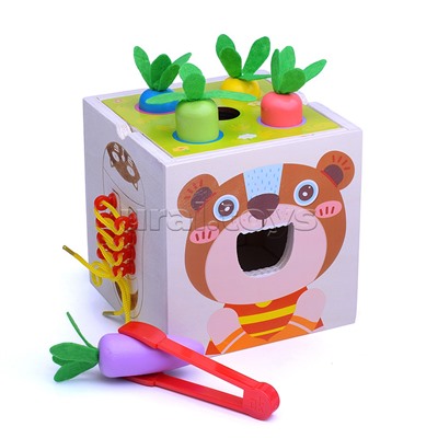 Код: 447716 Штрихкод: 6978459025148 Страна производитель: Китай Размеры упаковки: 16 x 14.5 x 15.5 см Количество в коробке: 27 Размер: 13 х 13 х 13 см В наборе: - 4 геометрические фигуры - 6 магнитных рыбок - 5 морковок - магнитная удочка - коробка - 4 игровых поля - 8 магнитных червячков - щипцы - птичка с магнитом - деревянный бизикуб Игрушка включает в себя 8 самых популярных игрушек для развития малышей: - магнитная рыбалка - магнитные червячки - сортер грядка с морковками - пазл геометрик - часы - шнуровка - застежка, - забота о питомце Изготовлено из дерева, в том числе могут присутствовать детали из металла, пластика Для детей от 3-х лет Комментарии к товару