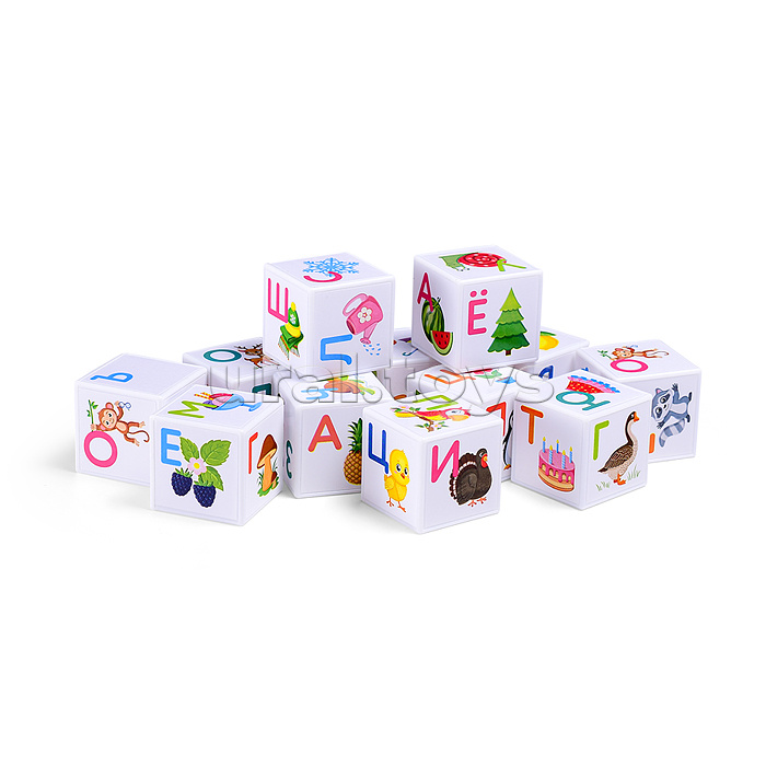 Количество в коробке: 16 • В наборе 12 кубиков с буквами.