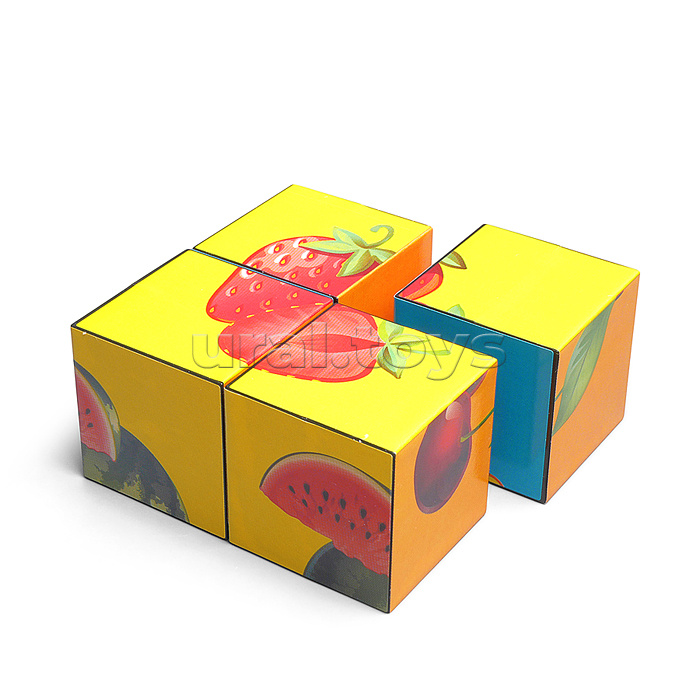 • В наборе 4 кубика с фрагментами картинок. • Размеры кубика: 4х4х4 см. • Материалы: пластмасса, бумага. • Соответствует требованиям безопасности продукции. • Для детей от 3-х лет.