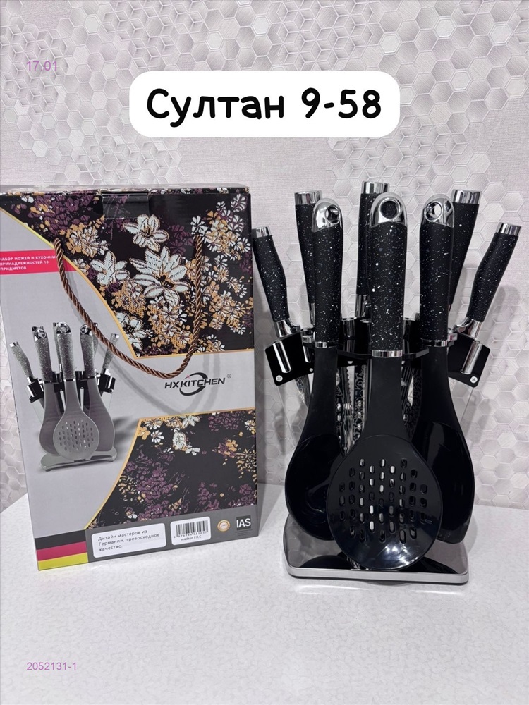 В набор входит: 5 шт ножей, 1 шт точилка для ножей, подставка под предметы, силиконовая лопатка, силиконовый половник, силиконовая шумовка4 расцветки: молочный, серый, черный, кофейныйВидео обзор t.me/GG_galinag...