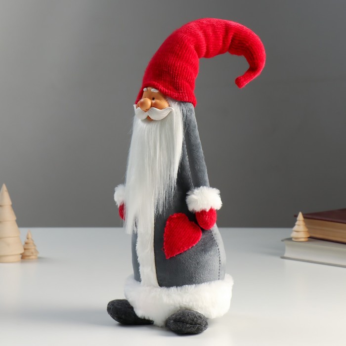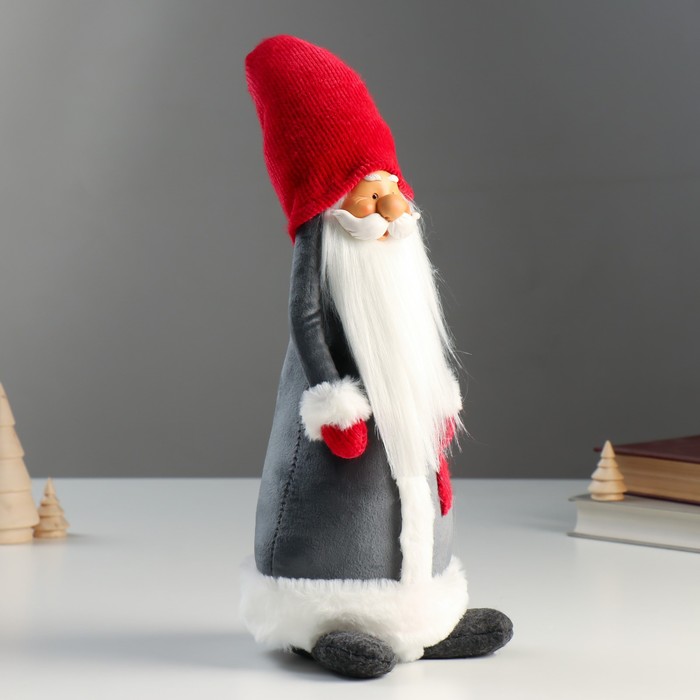 - Классический новогодний персонаж в серой шубе и красном колпаке.