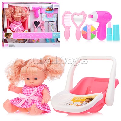 Код: 373663 Штрихкод: 6933112303704 Страна производитель: Китай Размеры упаковки: 31 x 42 x 23 см Количество в коробке: 9 • В наборе: - кукла (14х6х21 см.) - люлька (28х15х21 см.) - зеркало (6х1.5х11 см.) - расчёска (3.5х1.5х11 см.) - фен, без механизмов (8х4х10 см.) - памперс. • У куклы подвижные руки и ноги. • Материал: пластик. • Соответствует требованиям безопасности продукции. • Для детей от 3-х лет. Комментарии к товару