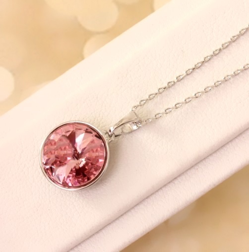 Кулон с покрытием родий. Материал: бижутерный сплав. Цвет покрытия: родий. Вставка: австрийские кристаллы. Размер камня: 1,2 см. Цвет камня: розовый. Длина цепочки: 45-50 см.
