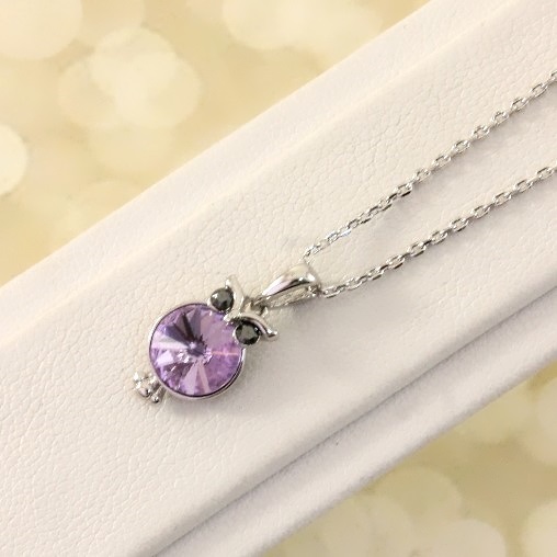 Кулон с покрытием родий. Материал: бижутерный сплав. Цвет покрытия: родий. Вставка: австрийские кристаллы. Размер кулона: 1,8 см. (с ушком). Диаметр камня: 0,9 см. Цвет камня: сирень. Длина цепочки: 40-45 см.