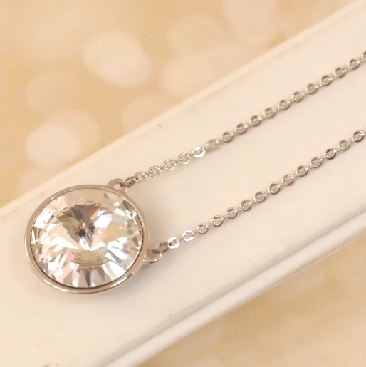Кулон с покрытием родий. Материал: бижутерный сплав. Цвет покрытия: родий. Вставка: австрийские кристаллы. Размер камня: 1,5 см. (с ободком) Цвет камня: белый. Длина цепочки: 45-50 см.