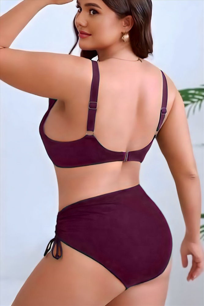 Купальник раздельный "вишенка" с завязками по бокам винный