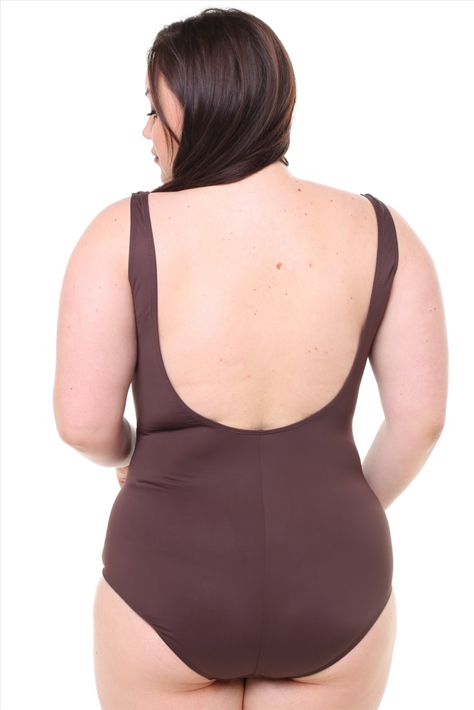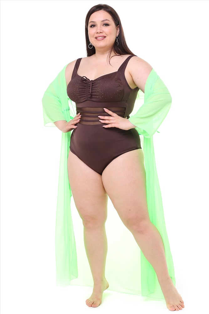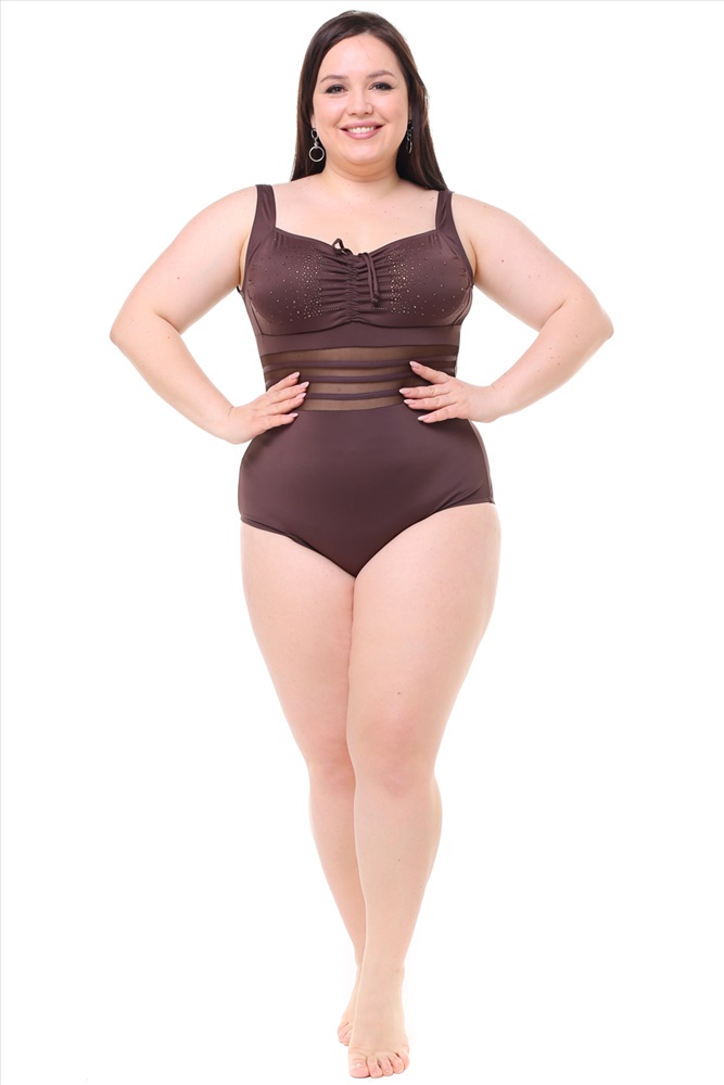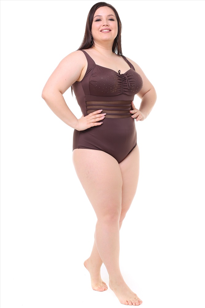 Купальник цельный с прозрачными полосками со стразами шоколад