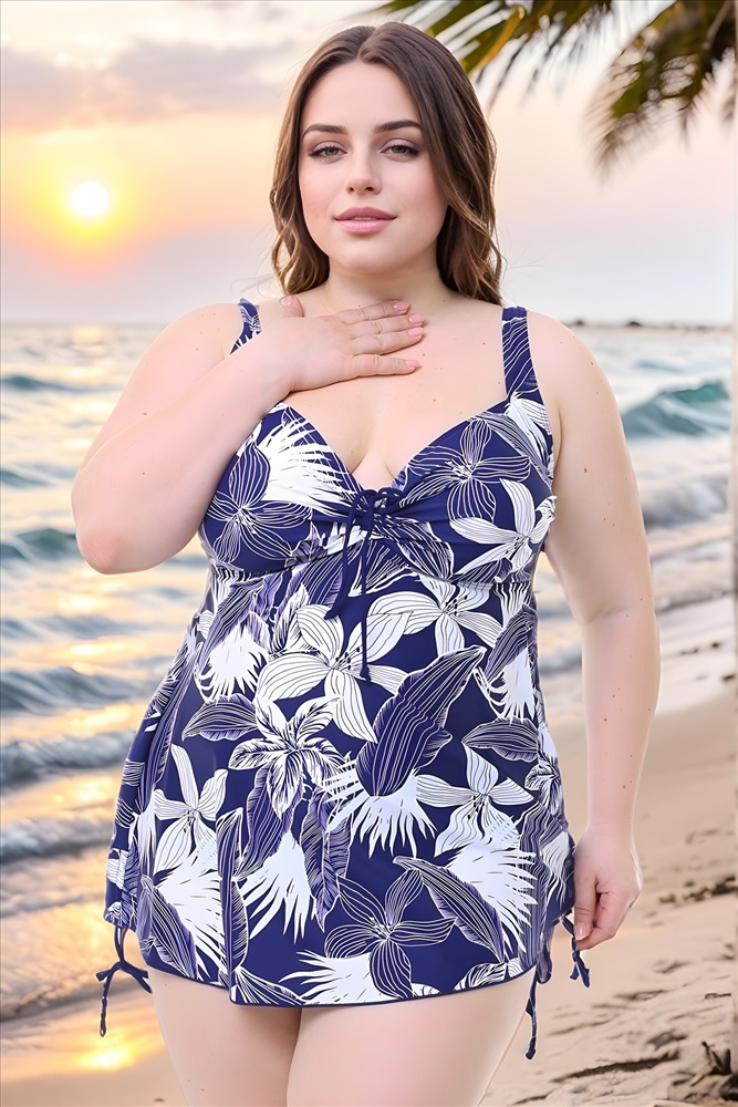 Раздельный купальный костюм из мягкого эластичного материала — модный вариант для тех, кто хочет создать интригующий и образ, и при этом скрыть недостатки фигуры. Бюстгальтер с мягкой чашкой, которая дублирована эластичной подкладочной тканью, благодаря чему модель не вытягивается, не просвечивается и плотно облегает грудь. Удобные широкие бретели регулируются по длине металлическими пряжками. Завышенная линия талии формирует легкий А-образный силуэт платья, под которым скрываются трусики, которые дублированы мягкой подкладочной тканью. Яркий растительный принт верха добавляет динамичности, а однотонный низ освежает образ. Эластичный материал обеспечивает комфорт и свободу движения. В этом формирующем фигуру купальнике вы наилучшим образом продемонстрируете свою элегантность и чувство стиля. (Материал устойчив к воздействию хлора. Чтобы сохранить первоначальный цвет и вид купальника, рекомендуем деликатную ручную стирку при температуре не более 30 градусов)