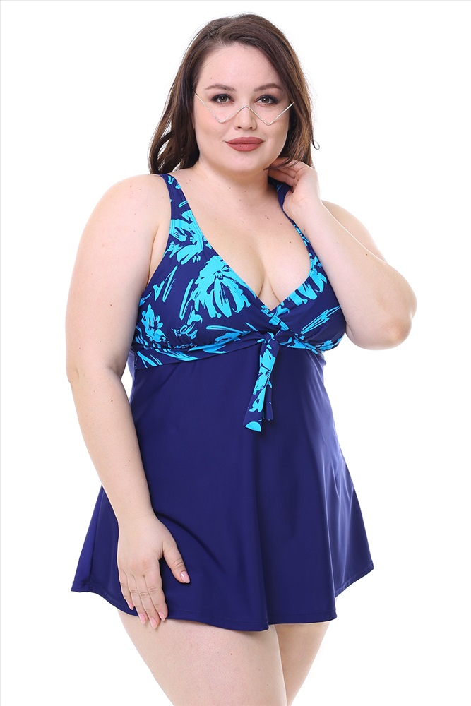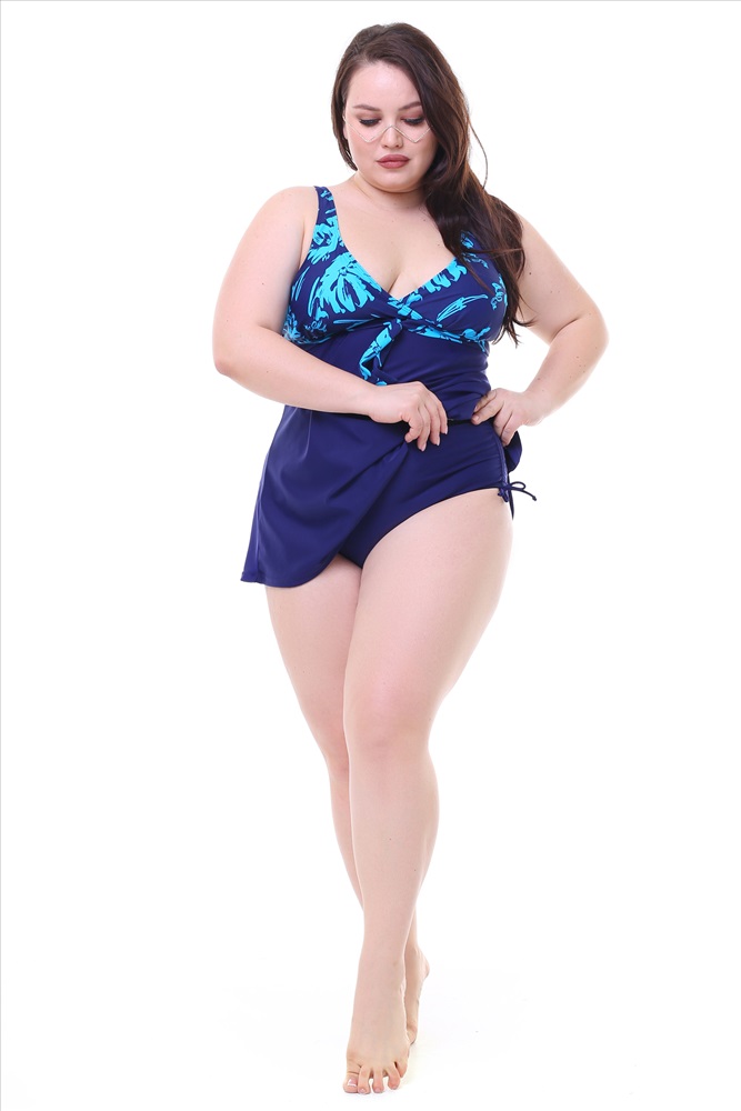 Раздельный купальный костюм из мягкого эластичного материала — модный вариант для тех, кто хочет создать интригующий и образ, и при этом скрыть недостатки фигуры. Бюстгальтер с мягкой чашкой, которая дублирована эластичной подкладочной тканью, благодаря чему модель не вытягивается, не просвечивается и плотно облегает грудь. Удобные широкие бретели регулируются по длине металлическими пряжками. Завышенная линия талии формирует легкий А-образный силуэт платья, под которым скрываются трусики, которые дублированы мягкой подкладочной тканью. Яркий растительный принт верха добавляет динамичности, а однотонный низ освежает образ. Эластичный материал обеспечивает комфорт и свободу движения. В этом формирующем фигуру купальнике вы наилучшим образом продемонстрируете свою элегантность и чувство стиля. (Материал устойчив к воздействию хлора. Чтобы сохранить первоначальный цвет и вид купальника, рекомендуем деликатную ручную стирку при температуре не более 30 градусов)