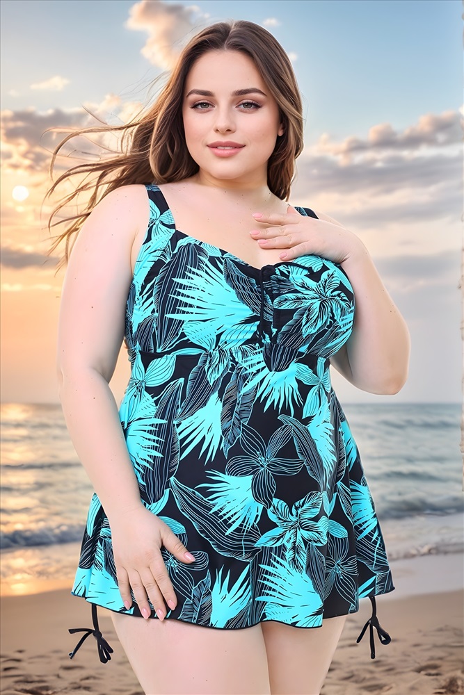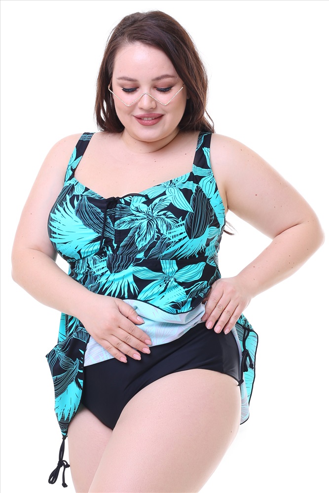 Раздельный купальный костюм из мягкого эластичного материала — модный вариант для тех, кто хочет создать интригующий и образ, и при этом скрыть недостатки фигуры. Бюстгальтер с мягкой чашкой, которая дублирована эластичной подкладочной тканью, благодаря чему модель не вытягивается, не просвечивается и плотно облегает грудь. Удобные широкие бретели регулируются по длине металлическими пряжками. Завышенная линия талии формирует легкий А-образный силуэт платья, под которым скрываются трусики, которые дублированы мягкой подкладочной тканью. Яркий растительный принт верха добавляет динамичности, а однотонный низ освежает образ. Эластичный материал обеспечивает комфорт и свободу движения. В этом формирующем фигуру купальнике вы наилучшим образом продемонстрируете свою элегантность и чувство стиля. (Материал устойчив к воздействию хлора. Чтобы сохранить первоначальный цвет и вид купальника, рекомендуем деликатную ручную стирку при температуре не более 30 градусов)