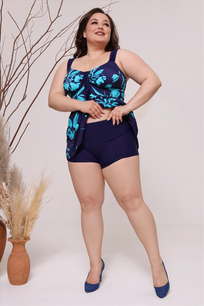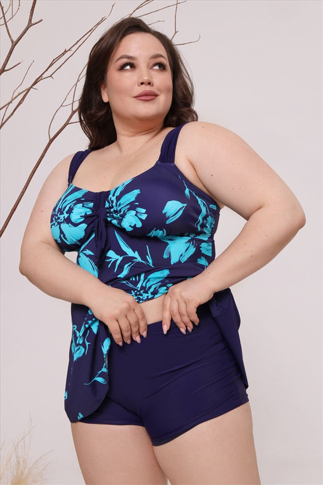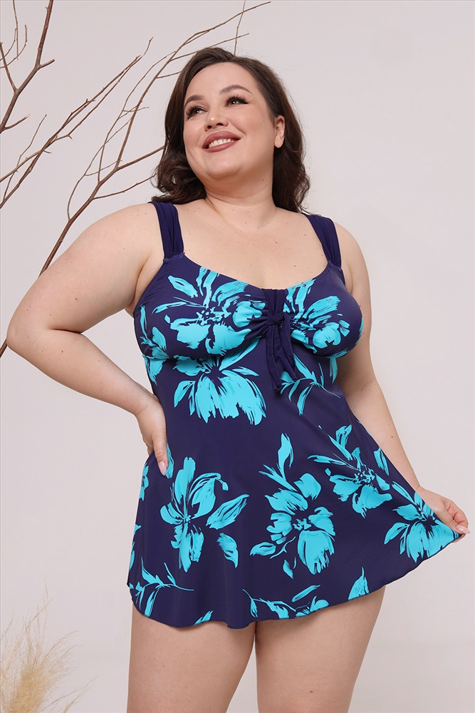 Раздельный купальный костюм из мягкого эластичного материала — модный вариант для тех, кто хочет создать интригующий и образ, и при этом скрыть недостатки фигуры. Бюстгальтер с мягкой чашкой, которая дублирована эластичной подкладочной тканью, благодаря чему модель не вытягивается, не просвечивается и плотно облегает грудь. Удобные широкие бретели регулируются по длине металлическими пряжками. Завышенная линия талии формирует легкий А-образный силуэт платья, под которым скрываются трусики, которые дублированы мягкой подкладочной тканью. Яркий растительный принт верха добавляет динамичности, а однотонный низ освежает образ. Эластичный материал обеспечивает комфорт и свободу движения. В этом формирующем фигуру купальнике вы наилучшим образом продемонстрируете свою элегантность и чувство стиля. (Материал устойчив к воздействию хлора. Чтобы сохранить первоначальный цвет и вид купальника, рекомендуем деликатную ручную стирку при температуре не более 30 градусов)