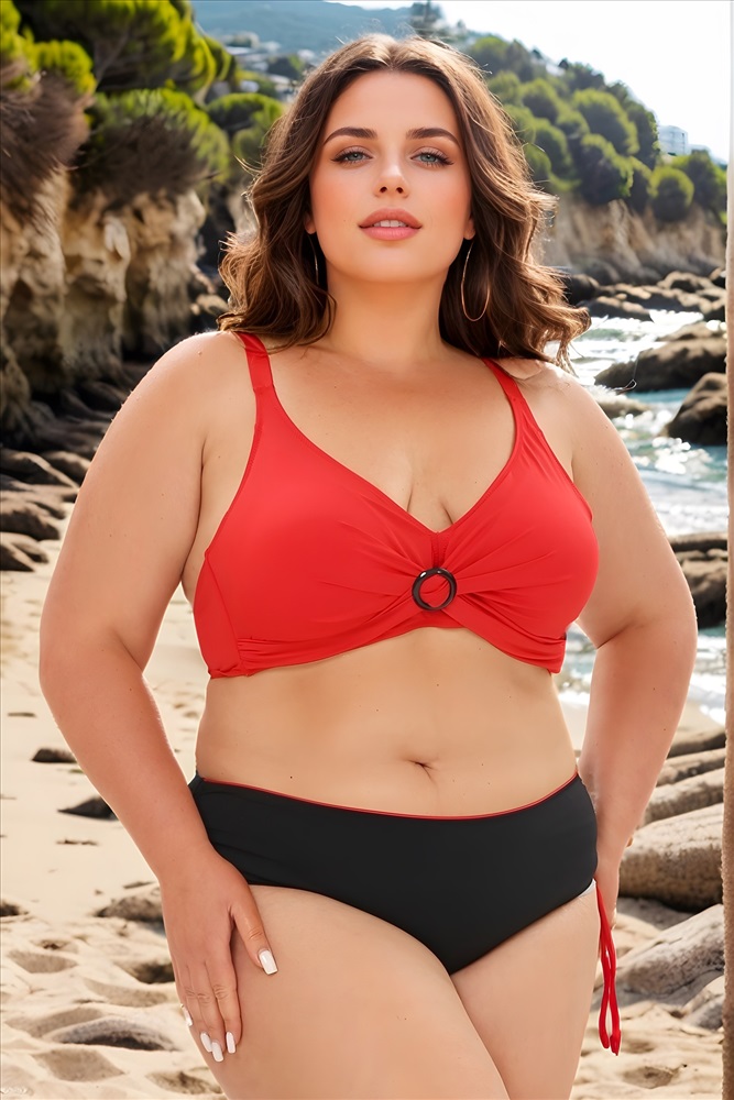 Купальник раздельный с декоративным кольцом на груди красный